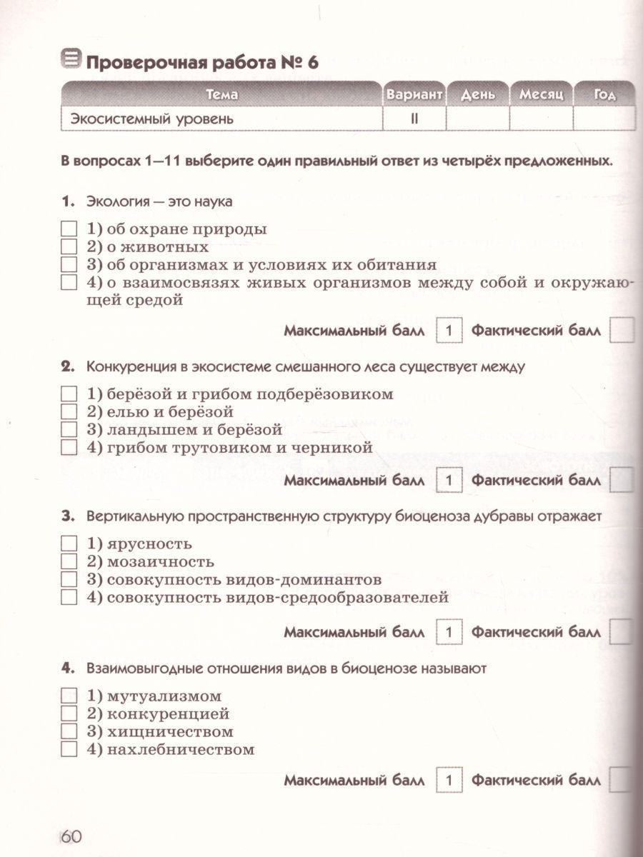 Введение в общую Биологию и Экологию 9 класс. Диагностические работы