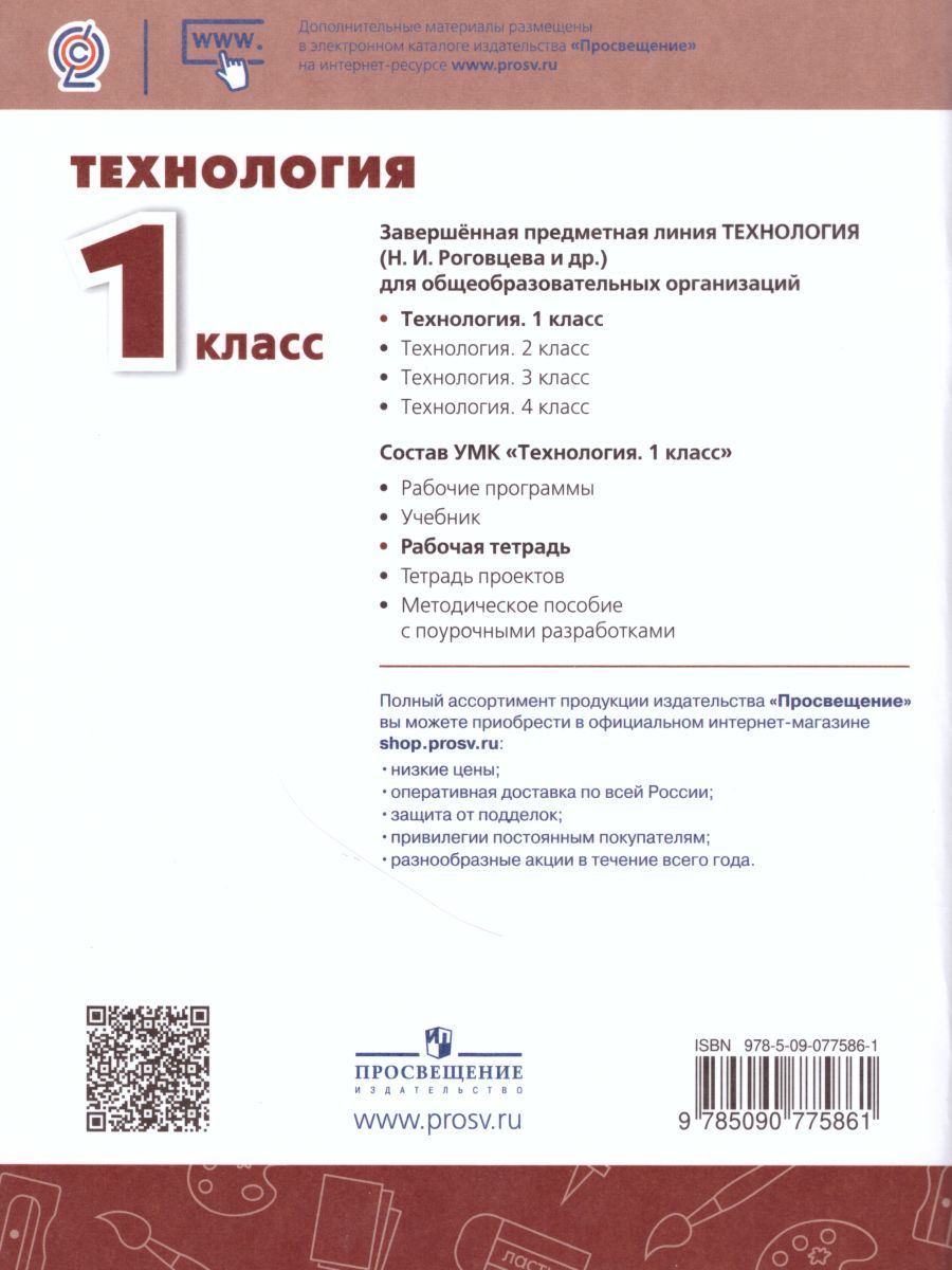 Рабочая тетрадь предназначена для работы на уроках технологии. Она дополняет темы учебника, позволяет облегчить работу учителям и упростить усвоение материала школьниками. Шаблоны изделий, готовые технологические карты для заполнения и заготовки для эскизов изделий экономят время на уроке и способствуют формированию умения работать с информацией, представленной в разных формах. Задания для проверки усвоенного материала и задания для самооценки позволяют учителю и детям быстро проверить знания. Дополнительные изделия помогают учителю реализовать вариативность в обучении. В рабочую тетрадь включён Блок дополнительных заданий по отработке навыков работы с ИКТ (работа с клавиатурой). Кроме того, рабочая тетрадь знакомит первоклассников с основными этапами проектной деятельности.Характеристики