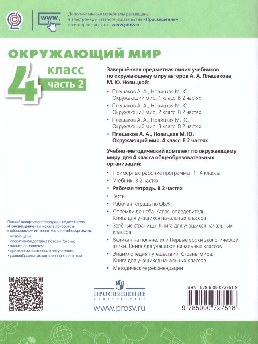 Окружающий мир 4 класс. Рабочая тетрадь в 2-х частях. Часть 2. УМК "Перспектива"