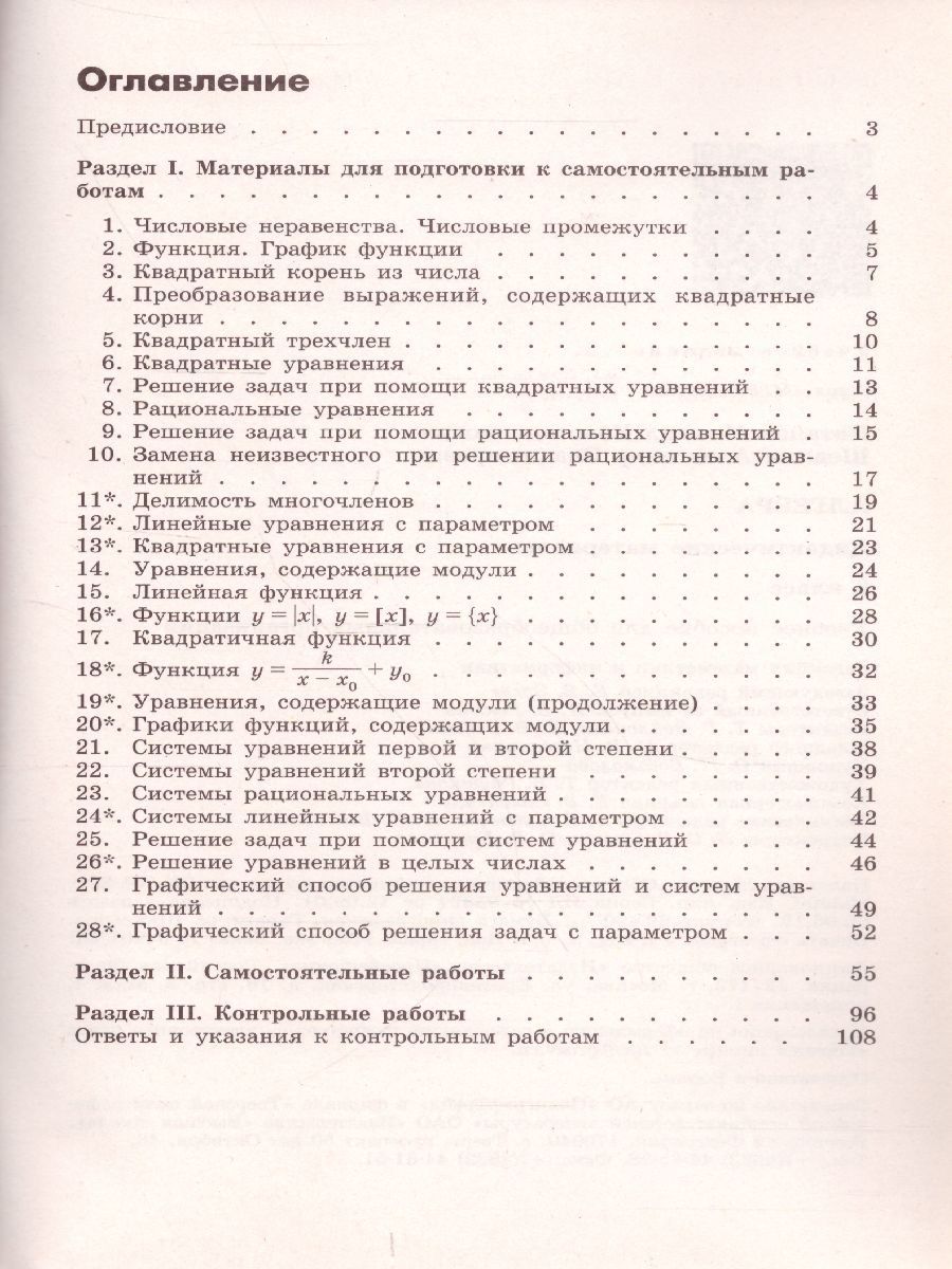 Пособие содержит задания для подготовки к самостоятельным работам по основным темам учебника "Алгебра, 8" С. М. Никольского и др., а также самостоятельные и контрольные работы в четырех вариантах.Характеристики