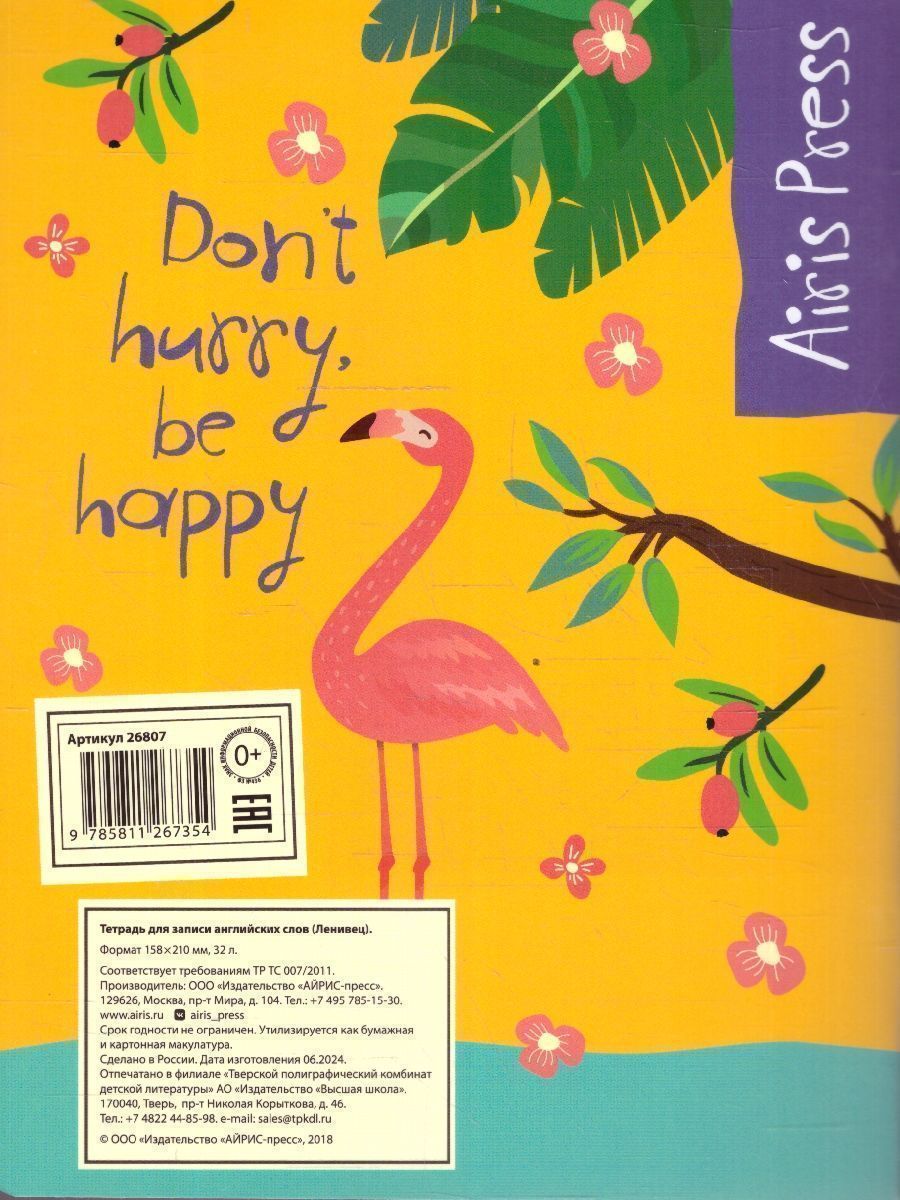 Тетрадь для записи английских слов "Ленивец". Эта тетрадь поможет выучить новые английские слова. Прочная глянцевая обложка оригинального современного дизайна с английской тематикой и блок в клетку. Листы расчерчены на три столбца: слово, транскрипция, перевод. Удобная разметка страницы в клетку позволяет записать несколько вариантов перевода и сопутствующую лексику (синонимы, антонимы и примеры употребления слова). В тетради есть справочный материал, необходимый для изучения языка: английский алфавит, правила чтения, 100 основных неправильных глаголов и таблица основных глаголов, вызывающих орфографические трудности. Тетрадь подходит для учащихся средней и старшей школы, а также студентам и взрослым.Характеристики