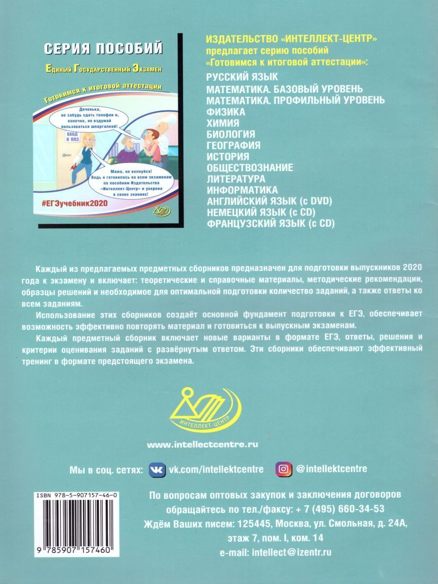 Данное пособие предназначено для подготовки учащихся 11 классов к Единому государственному экзамену (ЕГЭ) по литературе. Издание включает задания в формате ЕГЭ 2020 года. Пособие поможет школьникам проверить свои знания и умения по предмету, а учителям -оценить степень достижения требований образовательных стандартов отдельными учащимися и обеспечить их целенаправленную подготовку к экзамену.Характеристики