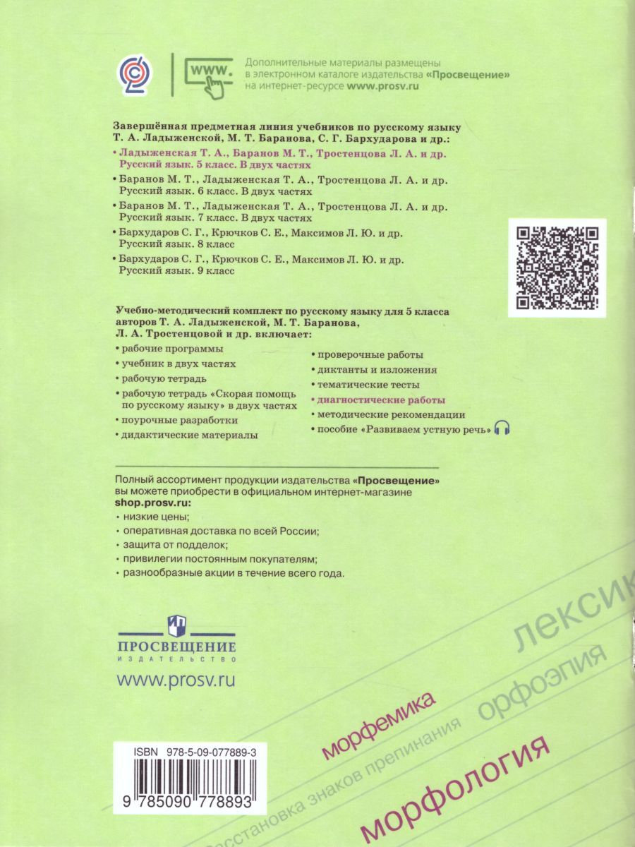 Диагностические работы по русскому языку адресованы учащимся и являются составной частью УМК по русскому языку для 5 класса авторов Т. А. Ладыженской, М. Т. Баранова и др. Сборник включает в себя три варианта тестов по всем разделам русского языка, входящим в курс обучения пятиклассников, и соответствует структуре учебника. Тесты позволяют определить результаты освоения текущего материала по русскому языку, а также материала, пройденного в начальной школе и включенного в курс повторения. В конце приводятся ключи к задачам.Характеристики