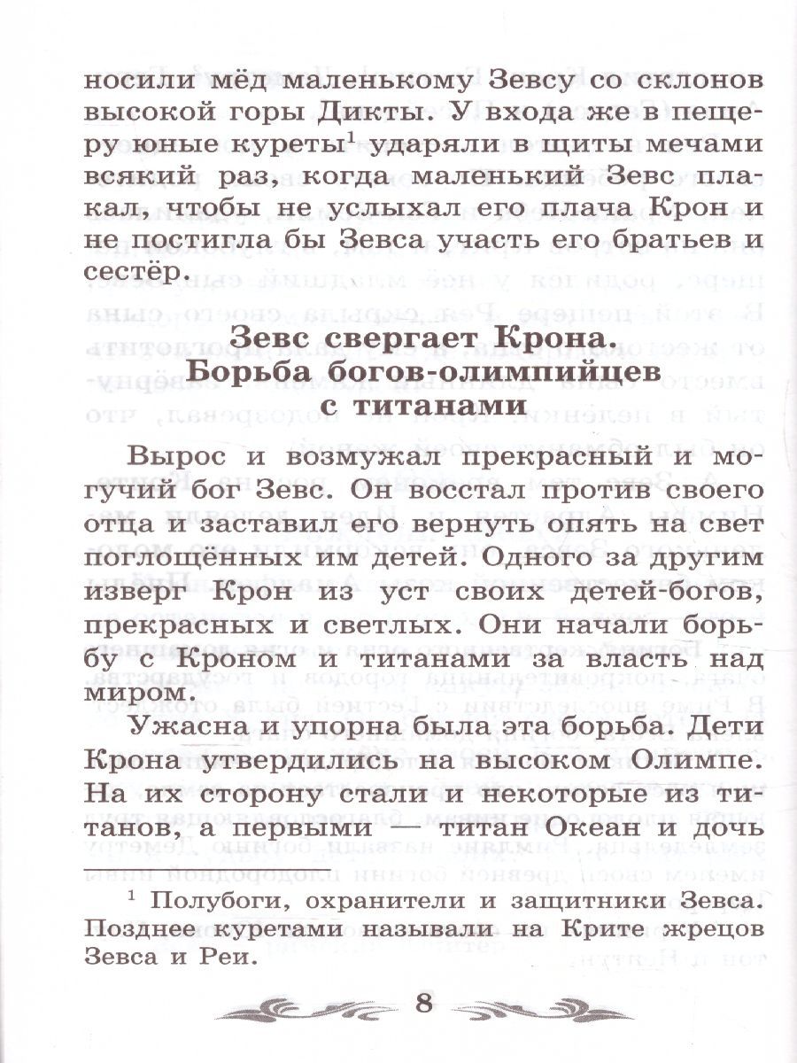 Николай Альбертович Кун (1877–1940) — русский историк, писатель. По линии матери происходил из старинного дворянского рода, в семье отца (фамилия Kuhn — немецкая) были немецкие и англо-шотландские корни. Николай Альбертович — блестящий выпускник историко-филологического факультета Московского университета, где среди прочего изучалась греческая и римская словесность и древность, навсегда ставшие центром его интересов. И хотя Кун написал множество книг, среди которых «Сказки африканских народов», «Сказки цыган», «Сказки народов островов Великого океана», перевод «Писем тёмных людей» (немецкой сатиры на схоластику), больше всего он известен как автор книги «Легенды и мифы Древней Греции». Николай Альбертович много преподавал: вёл занятия по истории культуры и религии в тверских, нижегородских и московских учебных заведениях. Работал за границей: в Берлинском университете и в Риме, где в 1911–1912 годах руководил экскурсиями российских учителей и читал лекции, как знаток античного искусства, в музеях, Форуме и в Палатине (римский холм, одно из самых древнезаселённых мест Вечного города). В 43 года Кун стал профессором общественных наук МГУ, писал статьи для Большой и Малой советских энциклопедий. Интерес к античности вдохновил Куна на создание книги, до сих пор пользующейся популярностью: впервые она была выпущена в 1922 году и с тех пор много раз переиздавалась, была переведена на языки народов СССР и основные европейские языки. Интересно, что изначально она называлась «Что рассказывали древние греки и римляне о своих богах и героях». Под заголовком «Легенды и мифы Древней Греции» издание вышло уже после смерти автора, в него были внесены изменения. В настоящем издании публикуется часть книги: основа эллинистических религиозных представлений, где описана иерархия Олимпа — от Зевса до Диониса; рассказывается, откуда произошли боги, их жёны и дети, во что выливается их гнев и как опасны встречи богов с простым человеком.Характеристики