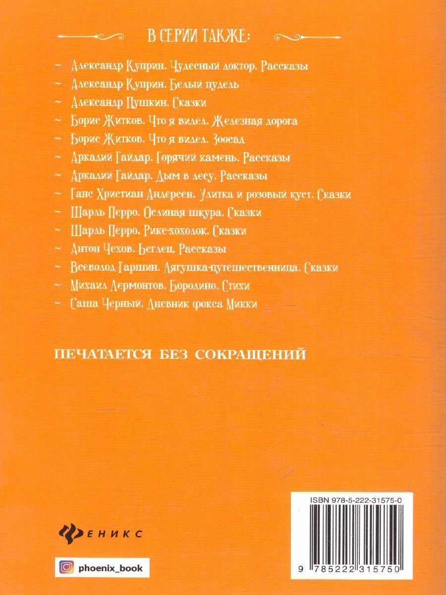 Дмитрий Наркисович Мамин-Сибиряк (1852–1912) — русский писатель, драматург. Родился на Висимо-Шайтанском заводе (Урал) в семье заводского священника. Семья жила довольно скромно, но благодаря стараниям отца будущий писатель получил хорошее домашнее образование. Позже Д.Н. Мамин-Сибиряк обучался в Духовном училище Екатеринбурга и семинарии Перми, но стезя священника совсем не привлекала молодого человека, и в 1872 году из Перми он перевёлся в Санкт-Петербург в Медико-хирургическую академию. Детское увлечение литературой не оставляло его, и в 1875 году Д.Н. Мамин-Сибиряк начинает работать репортёром в одной из Санкт-Петербургских газет. В 1877 году он возвращается на Урал, много пишет, и уже в начале 1880-х годов в петербургских и московских журналах публикуется много рассказов, очерков и повестей писателя. Свой первый детский рассказ «Емеля-охотник» Д.Н. Мамин-Сибиряк опубликовал в 1884 году. Писатель очень серьезно относился к детской литературе, считая, что детские рассказы «требуют особенного внимания, потому что дети — самая строгая публика». Д.Н. Мамин-Сибиряк в понятной и доступной форме описывал различные явления социальной действительности, ярко изображая быт и характеры гранильщиков, золотоискателей, рудокопов, металлургов («Вертел», «Под землей», «Под домной»). Перу Д.Н. Мамина-Сибиряка принадлежит множество сказок для детей. Увлекательная сказочная форма повествования позволяет автору объяснить детям, как нужно поступать, какие качества стоит воспитывать в себе. Так, сказка «Серая Шейка» учит добру, сопереживанию, взаимовыручке, «Сказка про храброго зайца — длинные уши, косые глаза, короткий хвост» учит не бояться опасностей и трудностей, а смело преодолевать их и всегда верить в собственные силы. Для младшего школьного возраста. Текст произведений приводится без сокращений.Характеристики
