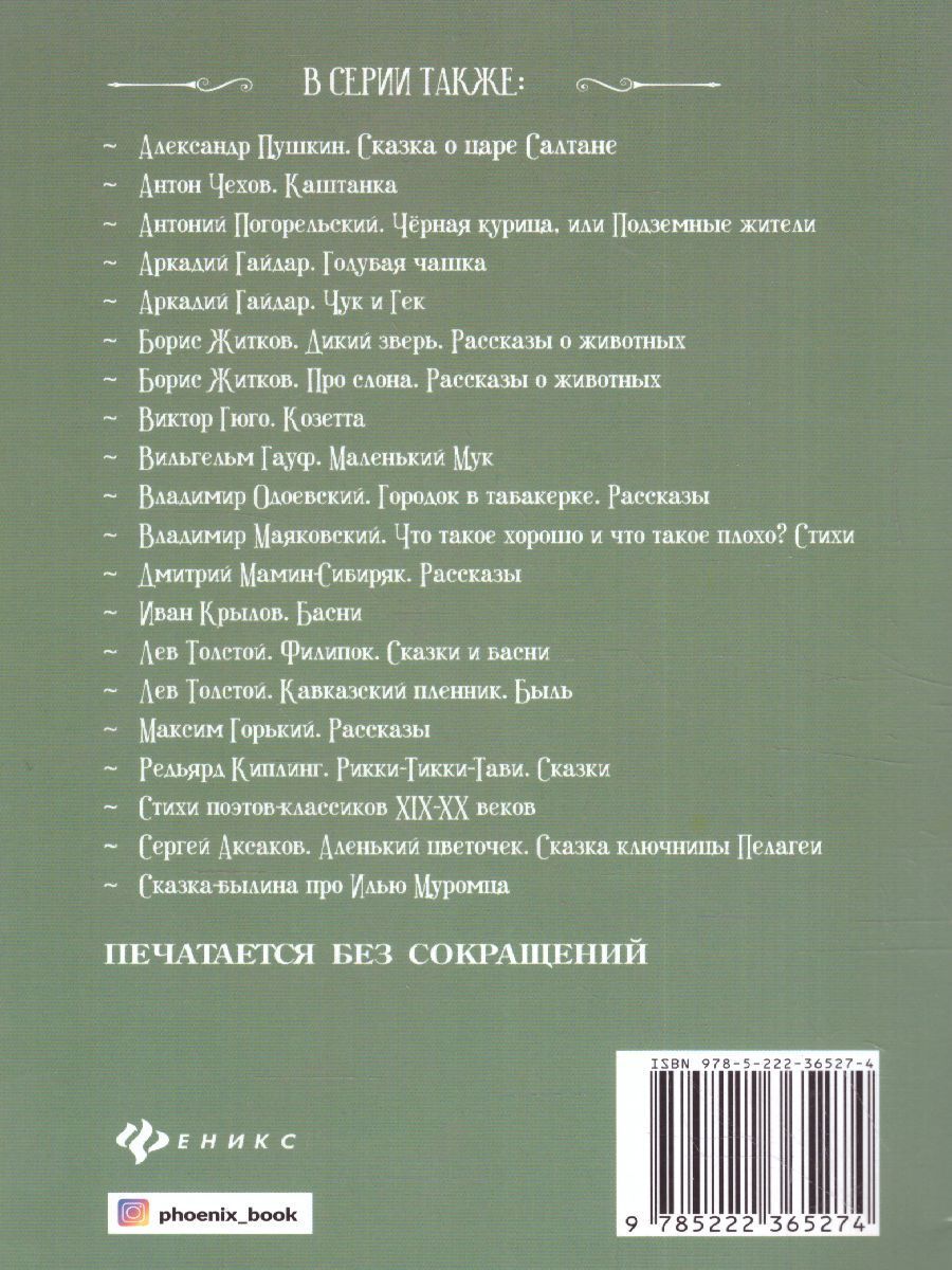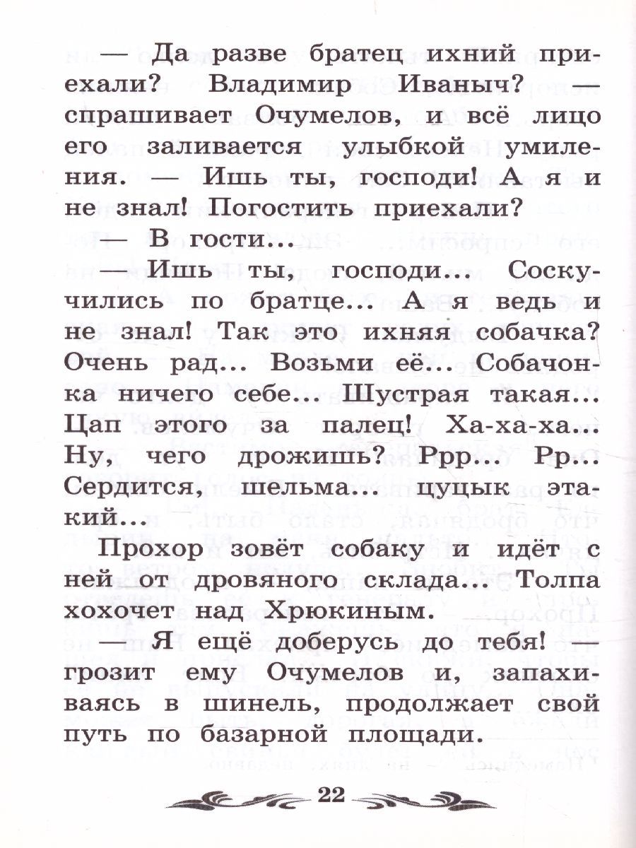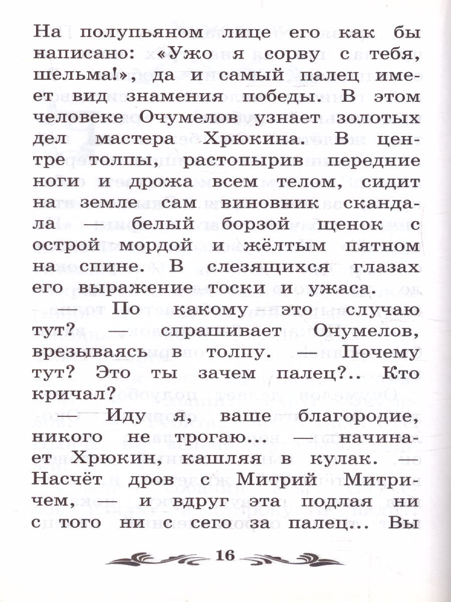 Антон Павлович Чехов (1860—1904) — русский писатель и драматург, известный во всем мире. Будущий писатель родился в Таганроге в купеческой семье и с малых лет помогал отцу в его лавке. В 1884 году А.П. Чехов окончил медицинский факультет Московского университета и занялся врачебной практикой. Писать он начал ещё в студенческие годы — в 1880 году в журнале «Стрекоза» были напечатаны его рассказ и юмореска. С тех пор он постоянно писал короткие юмористические рассказы под разными псевдонимами, самым популярным из которых был Антоша Чехонте. В 1890 году А.П. Чехов отправился на Сахалин, считавшийся островом царской каторги и ссылки, чтобы изучить историю и быт каторжников. В 1896 году писатель заканчивает работу над своей первой пьесой «Дядя Ваня», совершившей переворот в драматургии того времени. Всего же за 25 лет творчества А.П. Чехов создал более 300 различных произведений, многие из которых стали классикой мировой литературы. В рассказах А.П. Чехова почти никогда не происходит что-то значительное. Особое внимание автор уделяет деталям, речи, описанию быта персонажей и через эти подробные описания показывает нам внутренний мир героев, размышляет об их судьбах. Вместе с тем писатель никогда не навязывает свою точку зрения читателям. Чеховский юмор беспощаден — он срывает маски с тщательно скрываемых персонажами лицемерия, подлости, жадности, пошлости и подобострастия. Для младшего школьного возраста. Текст произведений приводится без сокращений.Характеристики