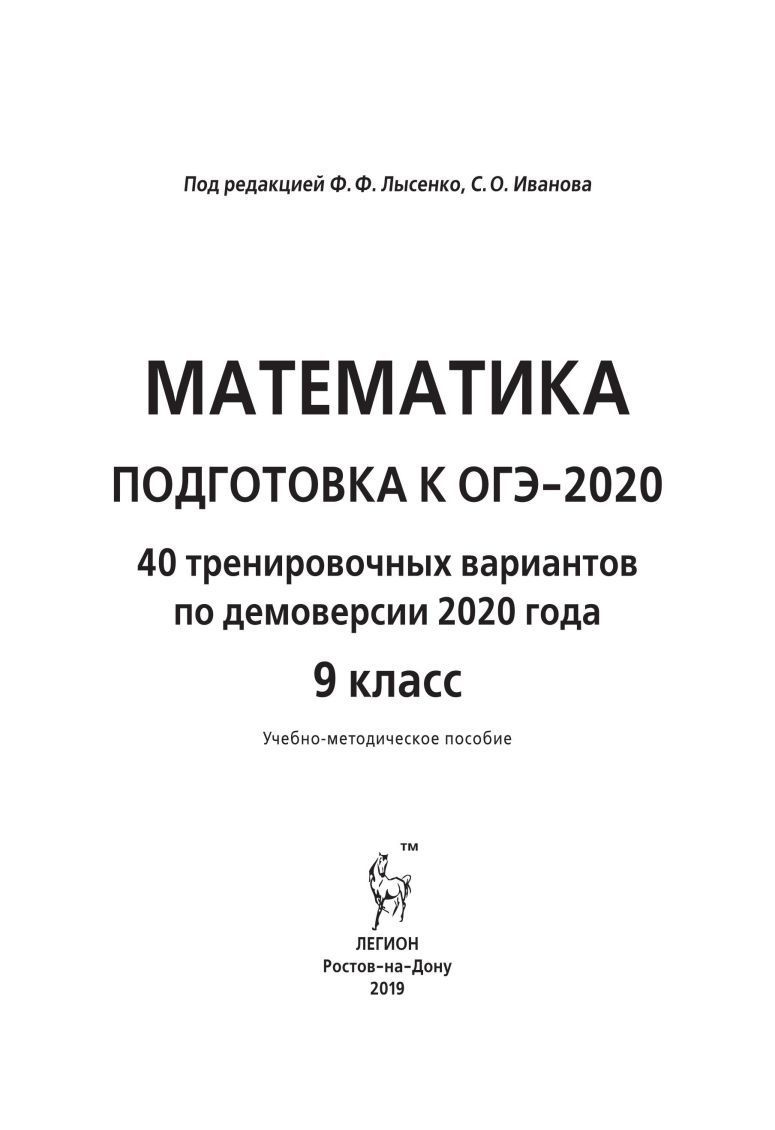 ОГЭ-2020 Математика 40 тренировочных вариантов по новой демоверсии 2020 года