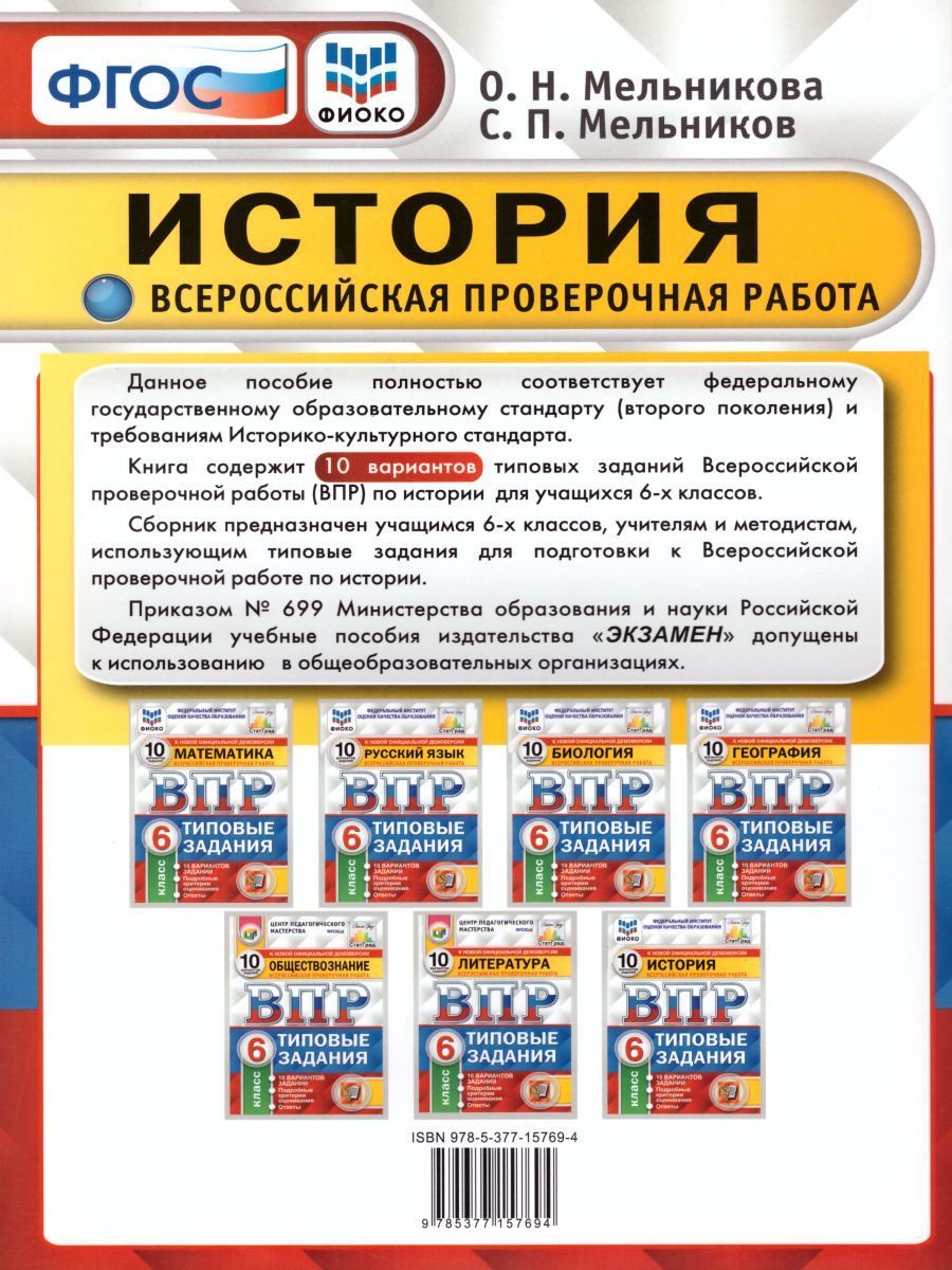 ВПР История 6 класс 10 вариантов. ФИОКО. ФГОС