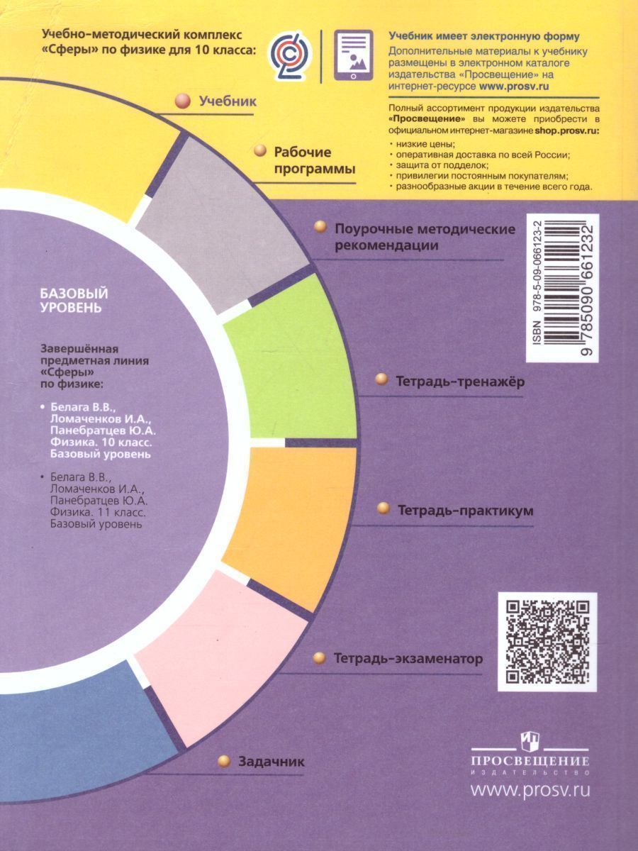 Учебник продолжает линию учебно-методических комплексов "Сферы" по физике. Издание подготовлено в соответствии с требованиями Федерального государственного образовательного стандарта основного среднего (полного) образования. Материал учебника направлен на формирование научных представлений о физических законах и явлениях и основывается на достижениях современной физики и техники. Главными особенностями данного учебника являются фиксированный в тематических разворотах формат, лаконичность и жёсткая структурированность текста, разнообразный иллюстративный ряд.Характеристики