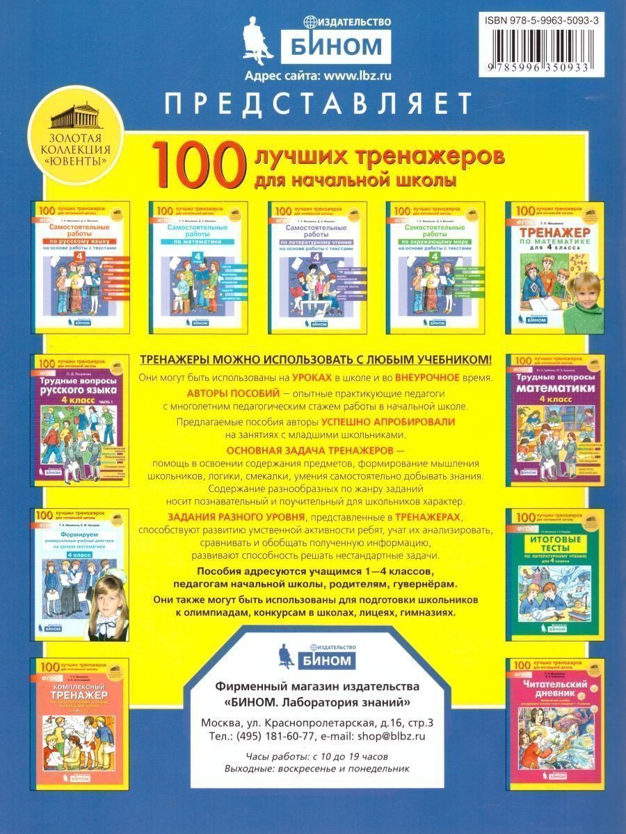 Самостоятельные работы по окружающему миру на основе работы с текстами. 4 класс. Пособие предназначено для закрепления у школьников знаний по окружающему миру на основе работы с текстами, а также для формирования УУД. Будет полезным оно и при формировании функциональной грамотности школьников. Разнообразные задания к тематическим учебно-познавательным текстам помогут четвероклассникам формировать умения выборочного чтения, преобразовывать информацию из одного вида в другой, выделять главное, обосновывать свою точку зрения и т.д.Характеристики