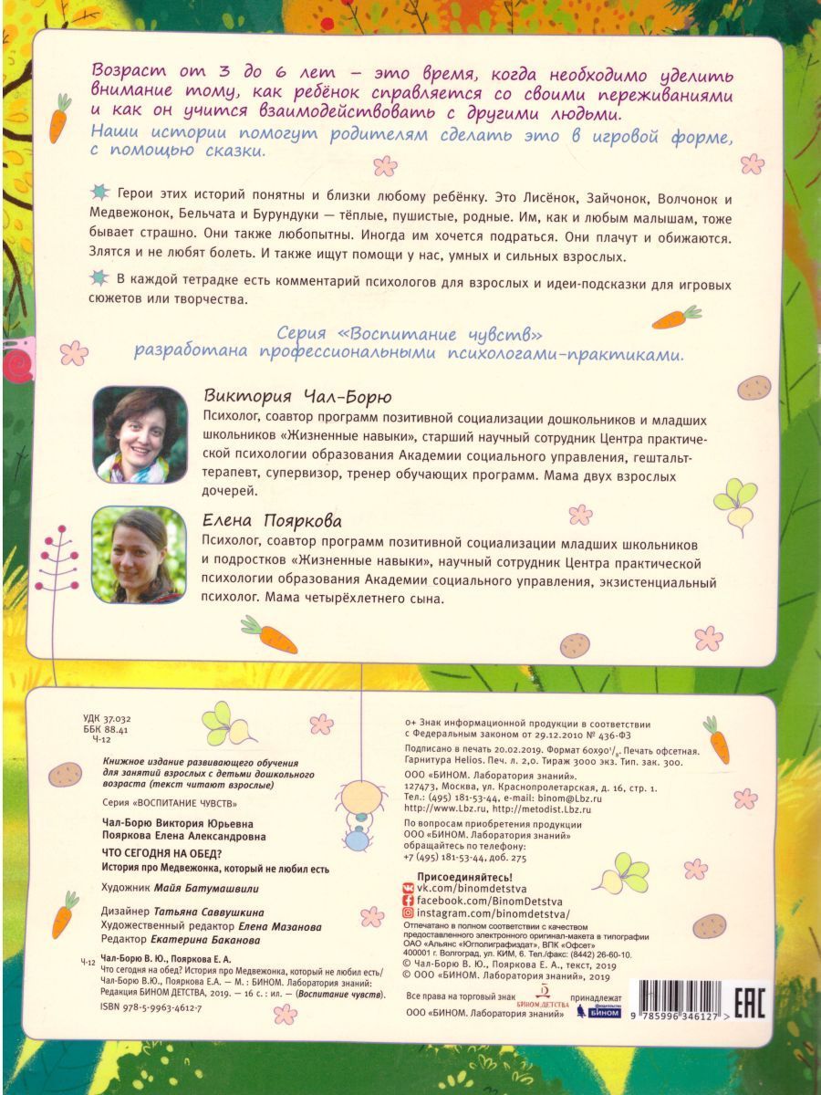 Серия разработана профессиональными психологами-практиками, авторами программы "Жизненные навыки" по развитию социальных и эмоциональных компетенций дошкольников. Каждая тетрадь серии -- это маленькая сказка с заданиями и комментариями для родителей. Тетради помогут родителям поближе узнать своего малыша и вместе преодолевать маленькие и большие проблемы взросления. Приемы сказкотерапии сочетаются с заданиями на рефлексию, размышления, что запускает механизм формирования эмоционального интеллекта.Характеристики