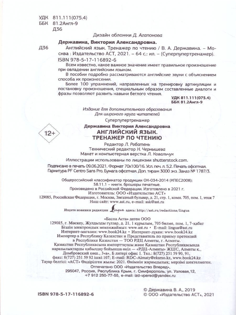 Всем известно, какое важное значение имеет правильное произношение при овладении английским языком. В пособии подробно рассматриваются английские звуки с объяснением способа их произнесения. Более 100 упражнений, направленных на тренировку артикуляции и постановку произношения, специальным образом составленные диалоги и фразы позволяют развить навыки беглого чтения.Характеристики