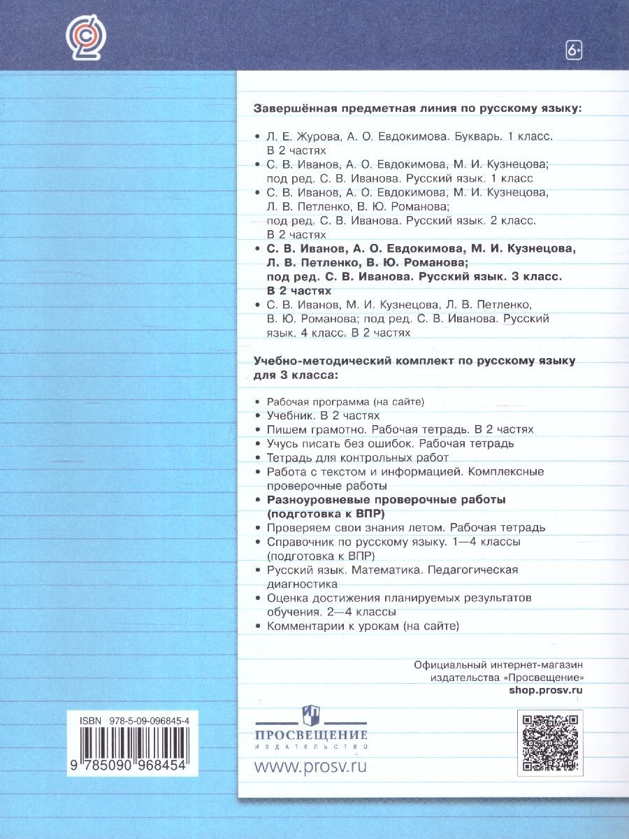 Разноуровневые проверочные работы направлены на оценивание достижения планируемых результатов по русскому языку учащимися 3 класса в начале и в конце учебного года. Пособие составлено в соответствии с требованиями Федерального государственного образовательного стандарта начального общего образования, поэтому может быть использовано при работе по любому УМК «Русский язык». В тетради представлено пять проверочных работ в двух вариантах, равнозначных по степени сложности. Работы № 1—2 могут быть предложены для выполнения учащимся в начале I четверти для определения уровня успешности обучения во 2 классе. Работы № 3—5 целесообразно провести в III—IV четвертях 3 класса. Интересная система развития умений самоконтроля и самооценки способствует успешности в обучении. Полученные результаты позволят педагогу, самим учащимся, их родителям увидеть степень освоения материала, а в случае выявления проблем — вовремя устранить их. Задания повышенного уровня сложности помогут определить третьеклассников с выраженными способностями к изучению русского языка.Характеристики