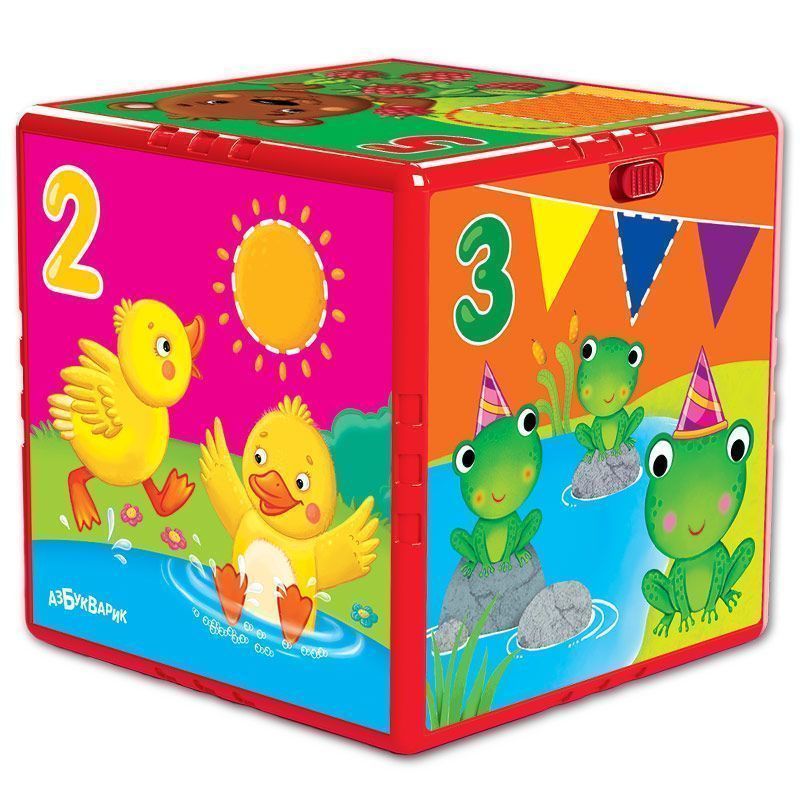 Говорящий кубик «Счет, формы, цвета» – уникальная игрушка, с которой ваш малыш получит первые, самые необходимые знания! В игровой форме кроха сможет изучить счет, формы, цвета, познакомиться с животными, а веселые песенки и смешные звуки превратят обучение в радостное увлечение! Игрушка представляет собой пластиковый кубик, на гранях которого изображены яркие сюжетные иллюстрации. Кубик уникален тем, что все его грани озвучены. Всего 6 активных граней, поворачивая кубик, малыш сможет послушать 45 звуков и голосов животных, 19 песенок и мелодий («Песенка про счёт», «Мы белки шалунишки», «Белка»,«Танец утят», «Ладушки»,« Если весело живется , делай так», «Окунь», «Дождик», «Я мишка», «Мишка косолапый», «Бегемот», «Песенка о лете», Яблочко», «Семь-сорок», «Немецкая полька», танцевальные мелодии) . Игра с Говорящим кубиком направлена на обучение маленького непоседы. Знакомство с цифрами и животными расширяет кругозор, а прослушивание популярных детских песен развивают музыкальный слух и способствуют развитию воображения. В игрушке установлены демонстрационные батарейки, перед игрой их рекомендуется заменить на новые. Бонус - QR-код для скачивания интерактивной азбуки для смартфона или планшета в приложении «Азбукварик».Характеристики