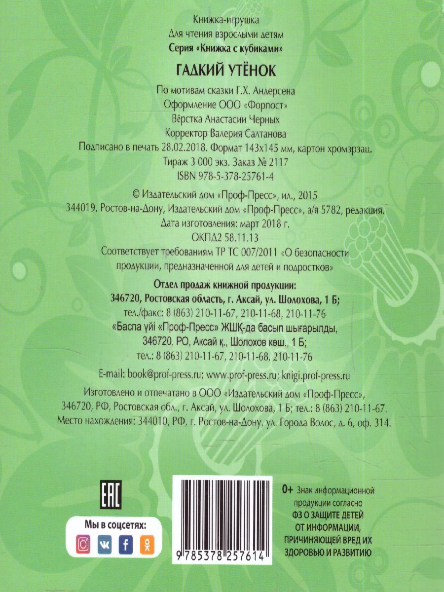 Книжка с кубиками - читай сказку и складывай картинку из 9 красочных кубиков! По мотивам сказки Г.Х. Андерсена. Для дошкольного возраста.Характеристики