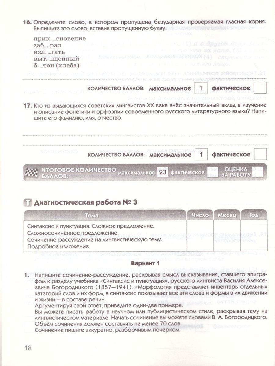 Русский язык 9 класс. Диагностические работы. Вертикаль. ФГОС