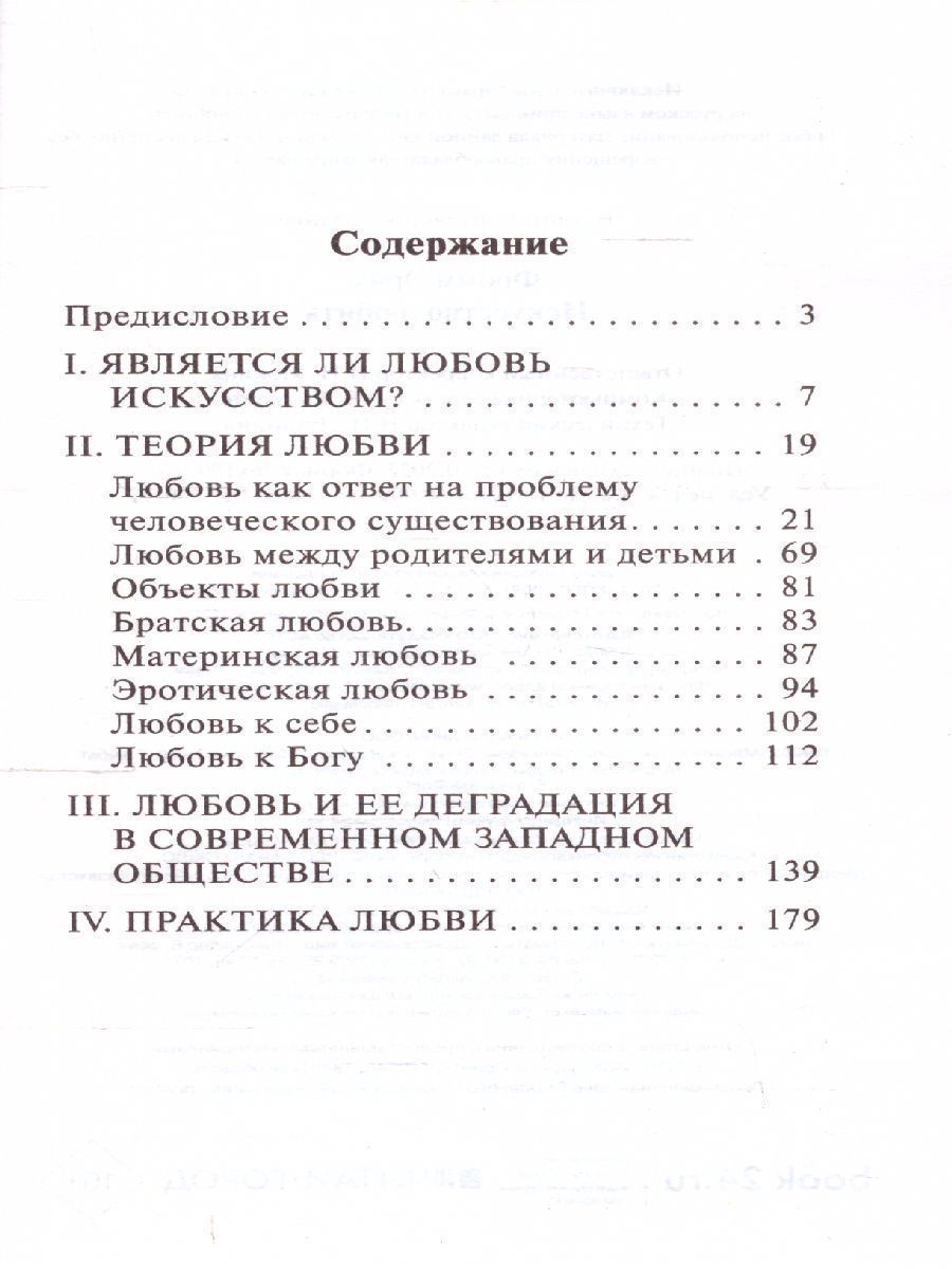 Одна из самых известных работ Эриха Фромма - "Искусство любить" - посвящена непростым психологическим аспектам возникновения и сохранения человеком такого, казалось бы, простого чувства, как любовь. Действительно ли любовь - искусство? Если да, то она требует труда и знаний. Или это только приятное ощущение?.. Для большинства проблема любви - это прежде всего проблема того, как быть любимым, а не того, как любить самому…Характеристики