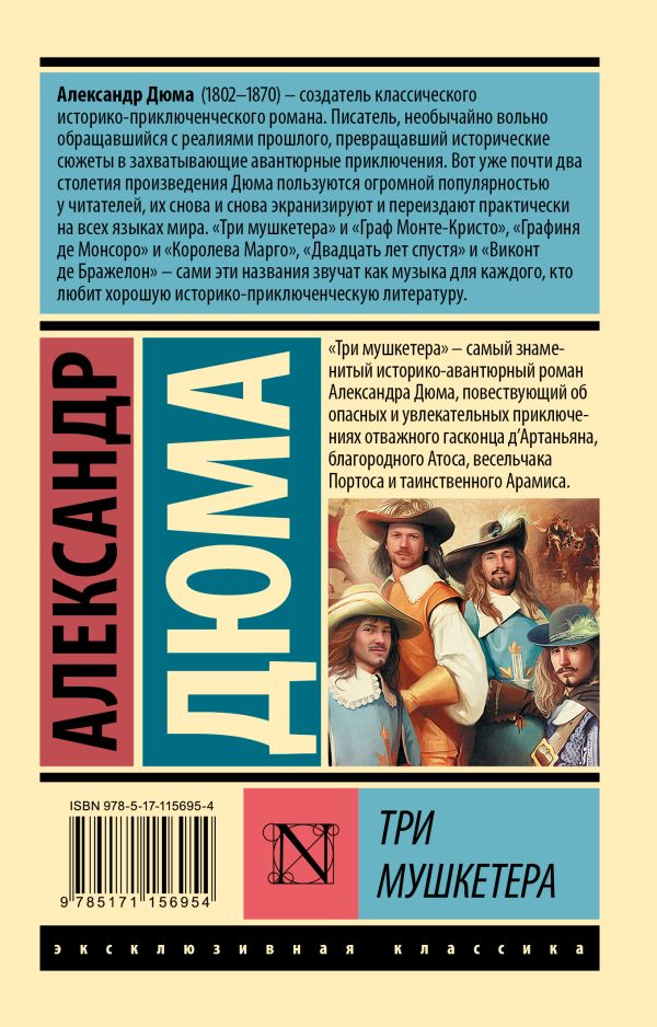 «Три мушкетера» — самый знаменитый историко‑авантюрный роман Александра Дюма, повествующий об опасных и увлекательных приключениях отважного гасконца д’Артаньяна, благородного Атоса, весельчака Портоса и таинственного Арамиса.Характеристики