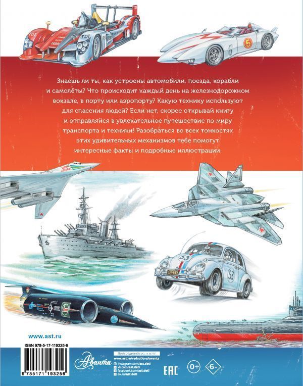 Эта книга — настоящее большое путешествие по миру транспорта и техники. Прочитав её, ты узнаешь, как устроены автомобили, поезда, корабли и самолёты; в чём заключается работа диспетчеров; какая техника помогает службам экстренной помощи каждый день спасать людей и ещё много всего интересного! Ты отправишься на экскурсию по железнодорожному вокзалу, порту, аэропорту и другим любопытным местам. Ну а красочные и очень подробные иллюстрации сделают твоё путешествие ещё увлекательнее. Для младшего школьного возраста.Характеристики