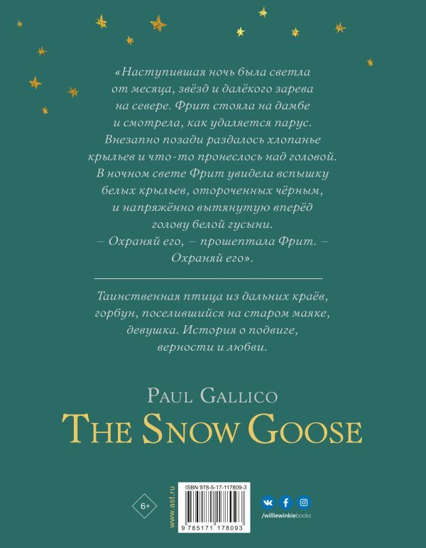 Рассказ классика американской литературы Пола Гэллико переносит читателей на болота Эссекса в Англии накануне Второй Мировой войны. История жизни, любви и подвига художника-горбуна учит дружбе и самопожертвованию. Яркие образы в книге созданы с помощью кинематографичного перевода сценариста и кинорежиссера Олега Дормана. «Белая гусыня» стала визитной картонкой Пола Гэллико. Рассказ был переведён на множество языков и получил престижную премию О. Генри. Гэллико написал более сорока книг и сорок сценариев, и каждое его произведение пользовалось неизменным успехом. Книга для детей младшего школьного возраста.Характеристики