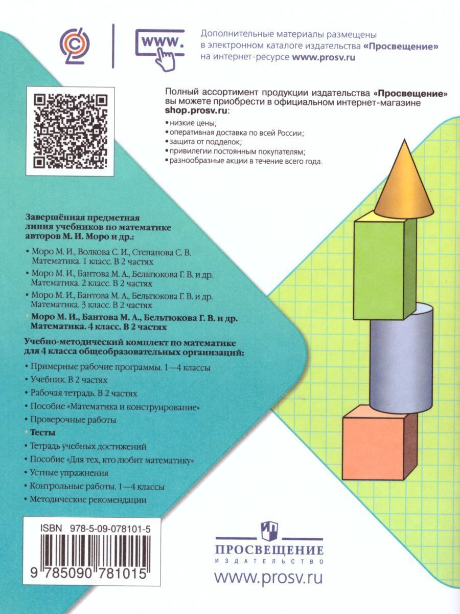 Пособие содержит тесты по математике для 4 класса в соответствии с содержанием курса «Математика» авторов М. И. Моро и др. Тестовые задания разработаны ко всем учебным темам и включают задания базового и повышенного уровней сложности. Задания базового уровня представлены тремя видами тестов. Задания повышенного уровня сложности представлены тестом №4 (под «звездочкой»). При этом обеспечивается постепенное нарастание сложности заданий как внутри каждого теста, так и при переходе от одного вида тестов к другому.Характеристики
