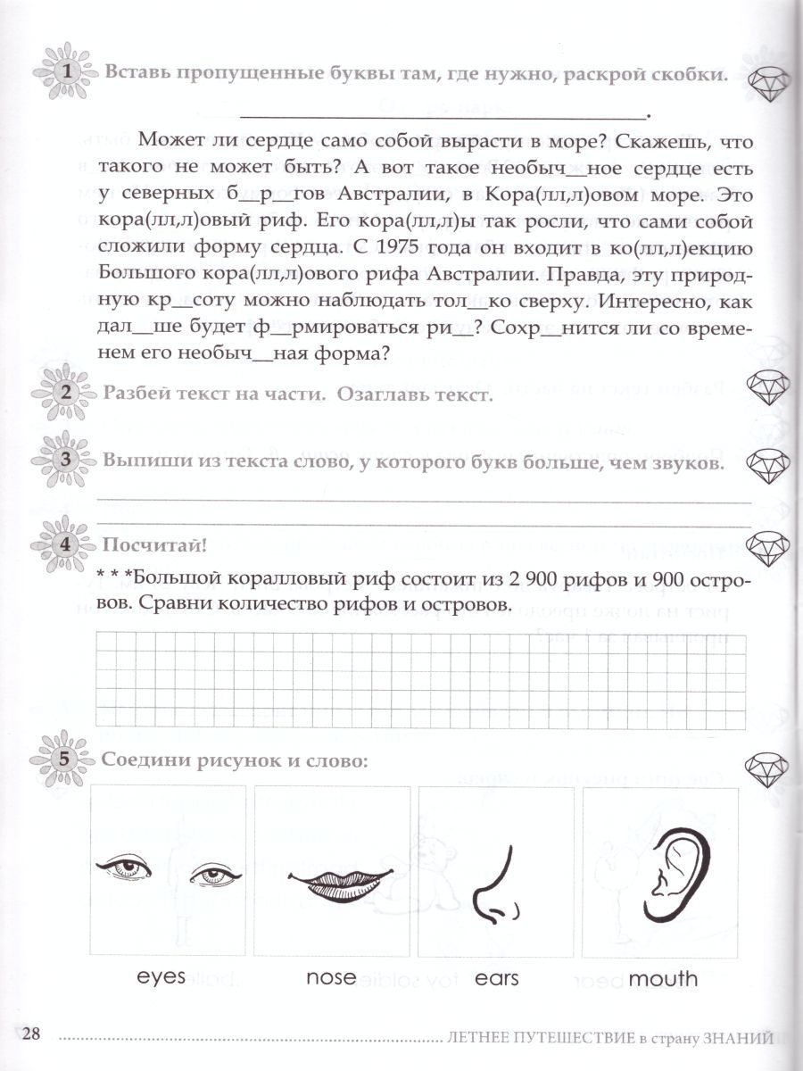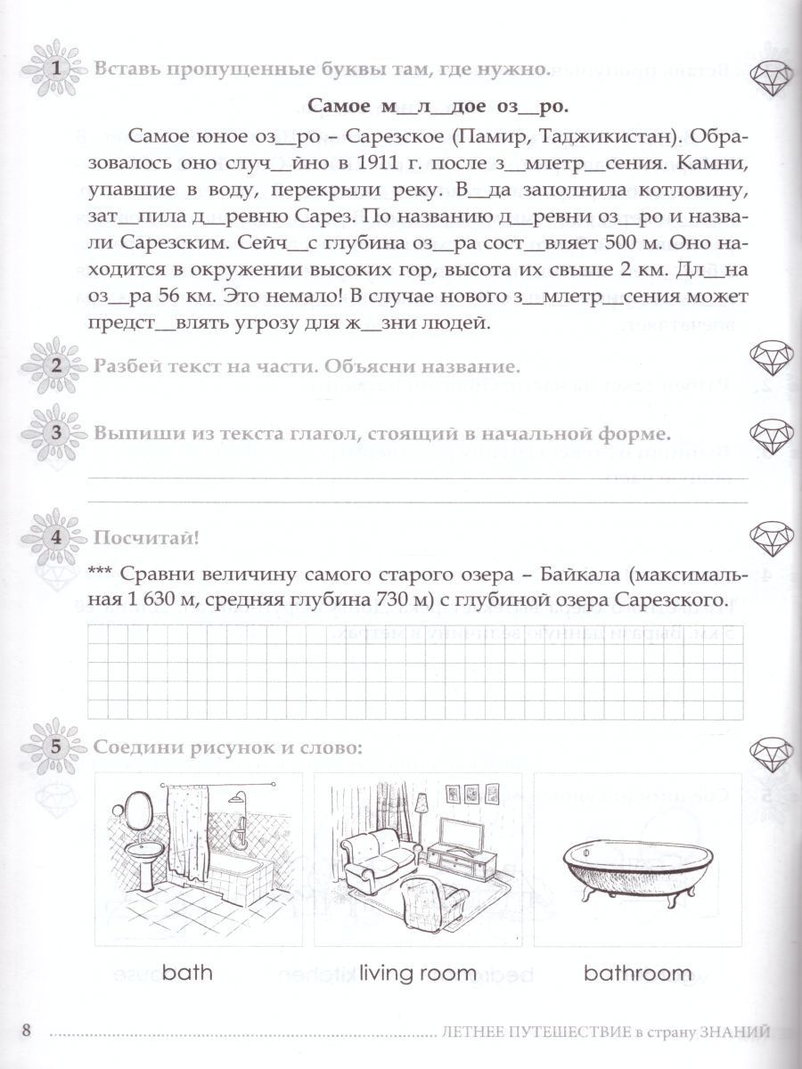 Летнее путешествие из 2 в 3 класс Русский язык, Устный счет, Чистописание, Чтение, Окружающий мир, Английские слова