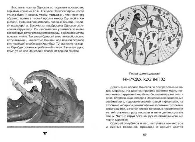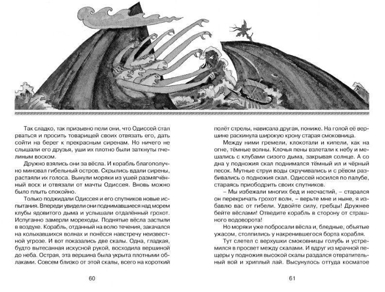 Эта книга, основанная на древних мифах, повествует о долгих странствиях хитроумного царя Одиссея, который по окончании Троянской войны возвращается домой на остров Итаку, где его ждут жена Пенелопа и сын Телемах. По дороге он преодолевает немало препятствий: плен у циклопа Полифема, бурю Эоловых ветров, коварный пролив между Сциллой и Харибдой.Характеристики