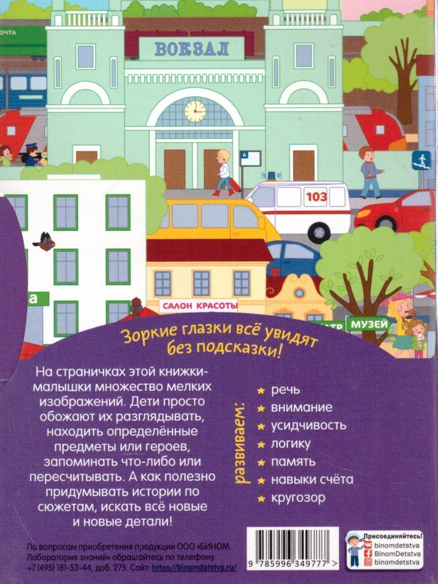 На страничках этой книжки-малышки множество мелких изображений. Дети просто обожают их разглядывать, находить определенные предметы или героев, запоминать что-либо или пересчитывать. А как полезно придумывать истории по сюжетам, искать все новые и новые детали! Книжка предназначена для детей старше 3-х лет.Характеристики