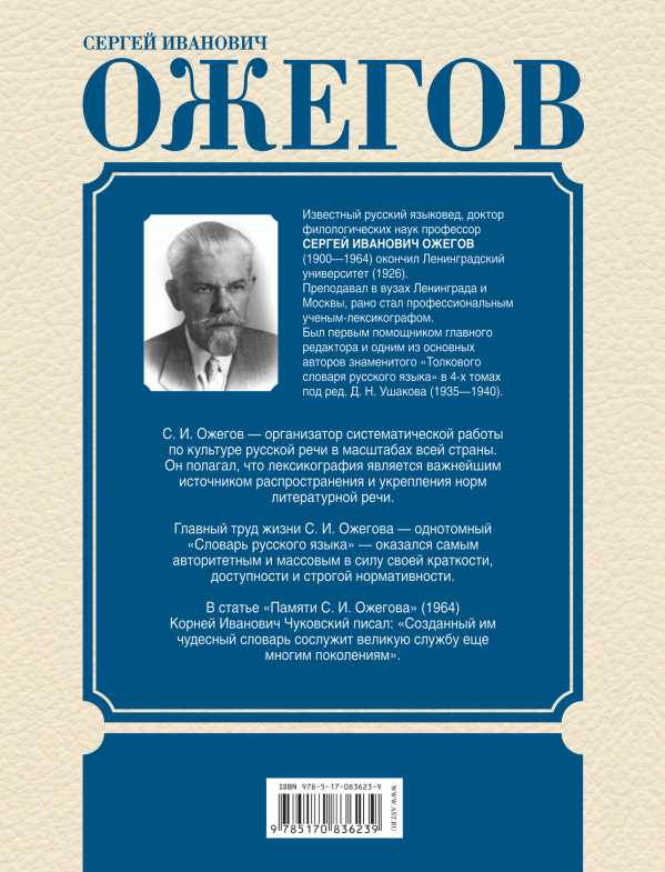 Настоящий словарь является исправленным и дополненным изданием классического "Словаря русского языка" С. И. Ожегова. В новое издание Словаря вошло около 100 000 слов, научных терминов, диалектизмов и архаизмов, устойчивых фразеологических сочетаний; при этом сохранены общая структура и характер подачи материала. Новые слова и выражения отражают не только изменения в общественно-политической, научной и культурной жизни России за последние 40 - 50 лет, но и актуальные языковые процессы нашего времени. Словарь содержит лексику, активно используемую в различных сферах русского языка. Словарная статья включает толкование слова, примеры его употребления в речи, раскрывает его фразеологические и словообразовательные возможности; указывается ударение и в трудных случаях произношение, приводится стилистическая характеристика. Словарные статьи, которые в предыдущем издании были даны в специальном приложении, и новые дополнения распределены в общем тексте и выделены специальным полиграфическим знаком (-Ф-). Словарь рассчитан на самый широкий круг читателей.Характеристики