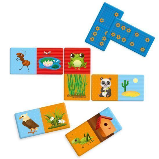 Детское домино «ГДЕ ЧЕЙ ДОМИК?» расширяет кругозор и знакомит ребёнка с окружающим миром, развивает его память, внимание, быстроту реакции, пространственное и логическое мышление. Также во время игры малыш учится сравнивать и сопоставлять предметы. ПРАВИЛА Первый вариант игры Цель игры - найти домик для каждого животного. На каждой фишке дано изображение, которому нужно подобрать пару. Подсказкой послужит цвет фона. Раздайте фишки всем игрокам и выкладывайте их по очереди. Второй вариант игры Используйте сторону фишек, где нарисованы цветочки. Принцип игры - как в классическом домино. Игра заканчивается, когда один из игроков сбросил все фишки. Можно объявить победителем того, кто первым закончит игру, или считать очки в ходе игры и в конце подвести итоги.Характеристики