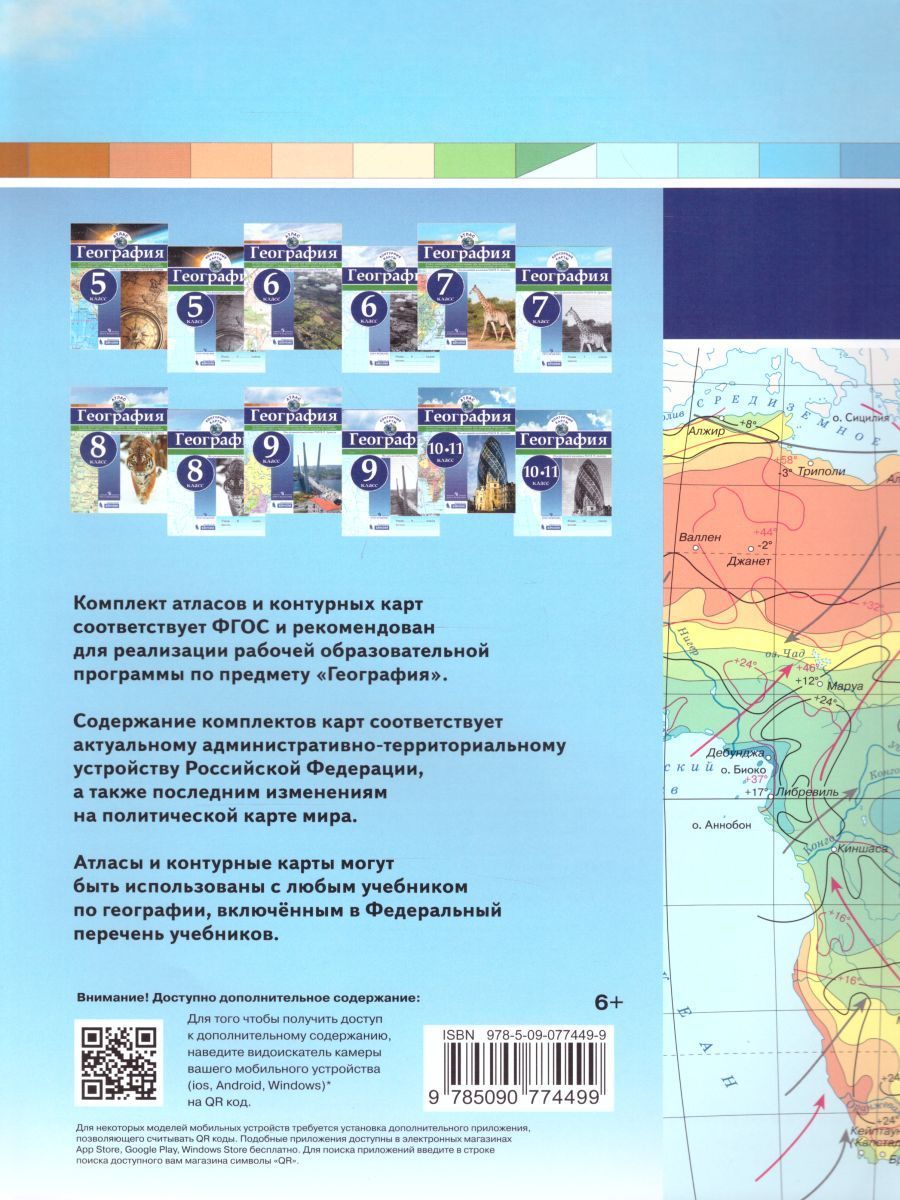 Атлас соответствует ФГОС и рекомендован для реализации образовательной программы по предмету "География" в 7 классе. Содержание комплектов карт соответствует актуальному административно-территориальному устройству Российской Федерации, а также последним изменениям на политической карте мира. Карты атласа насыщены информацией: большое количество малых городов и рек. При этом карты не "перегружены", учтены возрастные особенности учащихся. Карты снабжены современной интерактивной составляющей: содержат отсылку к проверенным Интернет-ресурсам через систему QR-кодов. Атласы поддерживаются постоянно дополняющейся и обновляющейся информацией на сайте издательства "Просвещение". Основное внимание уделяется географической карте, как основному источнику географической информации.Характеристики