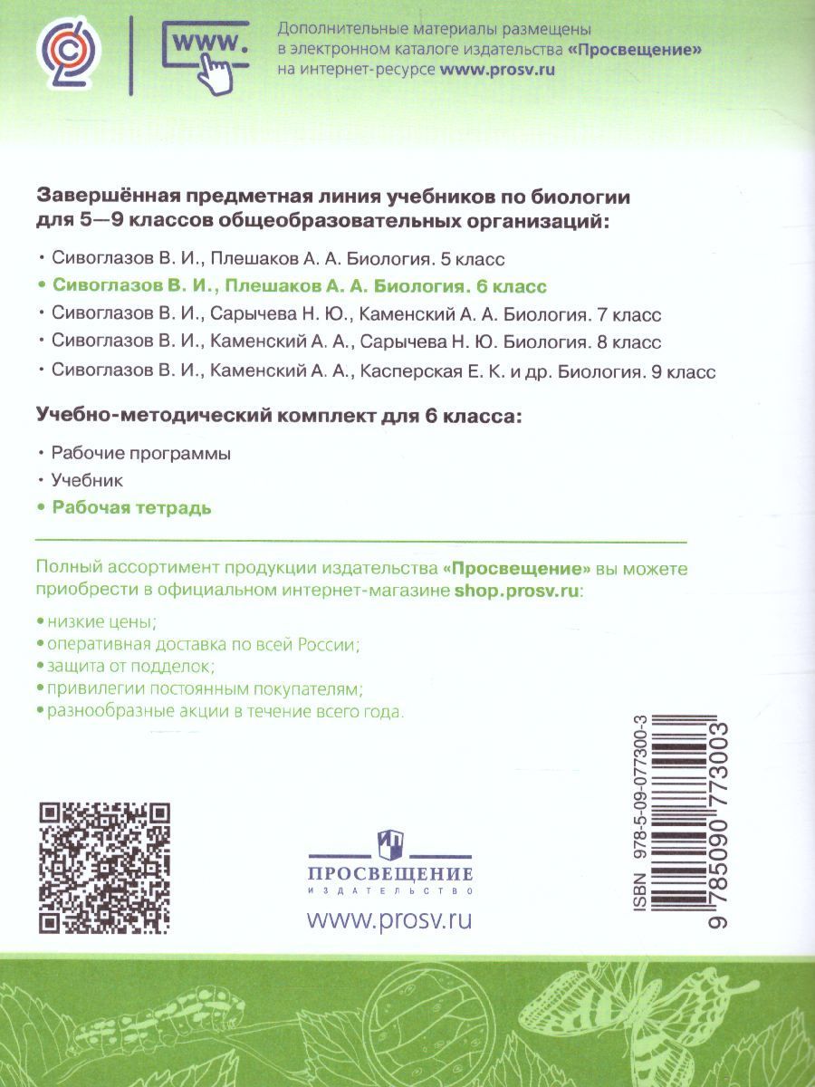 Рабочая тетрадь является составной частью учебно-методического комплекта В. И. Сивоглазова для 6 класса. Структура пособия соответствует тематической структуре учебника «Биология. 6 класс» и содержит вопросы и задания, направленные на отработку широкого спектра необходимых умений. В пособие включены задания для контроля, которые помогут подготовиться к итоговой проверке знаний. Пособие предназначено для самостоятельной работы учащихся дома и на уроке.Характеристики