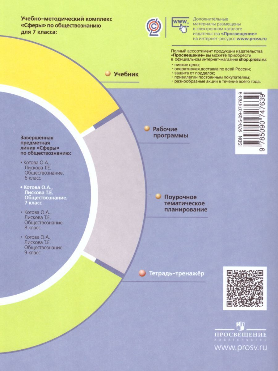 Тетрадь-тренажёр является составной частью учебно-методического комплекта "Обществознание" для 7 класса линии УМК "Сферы". В тренажёре содержатся задания для самостоятельной работы учащихся. Использование тетради-тренажёра ориентировано на активизацию процесса обучения и работу на результат.Характеристики