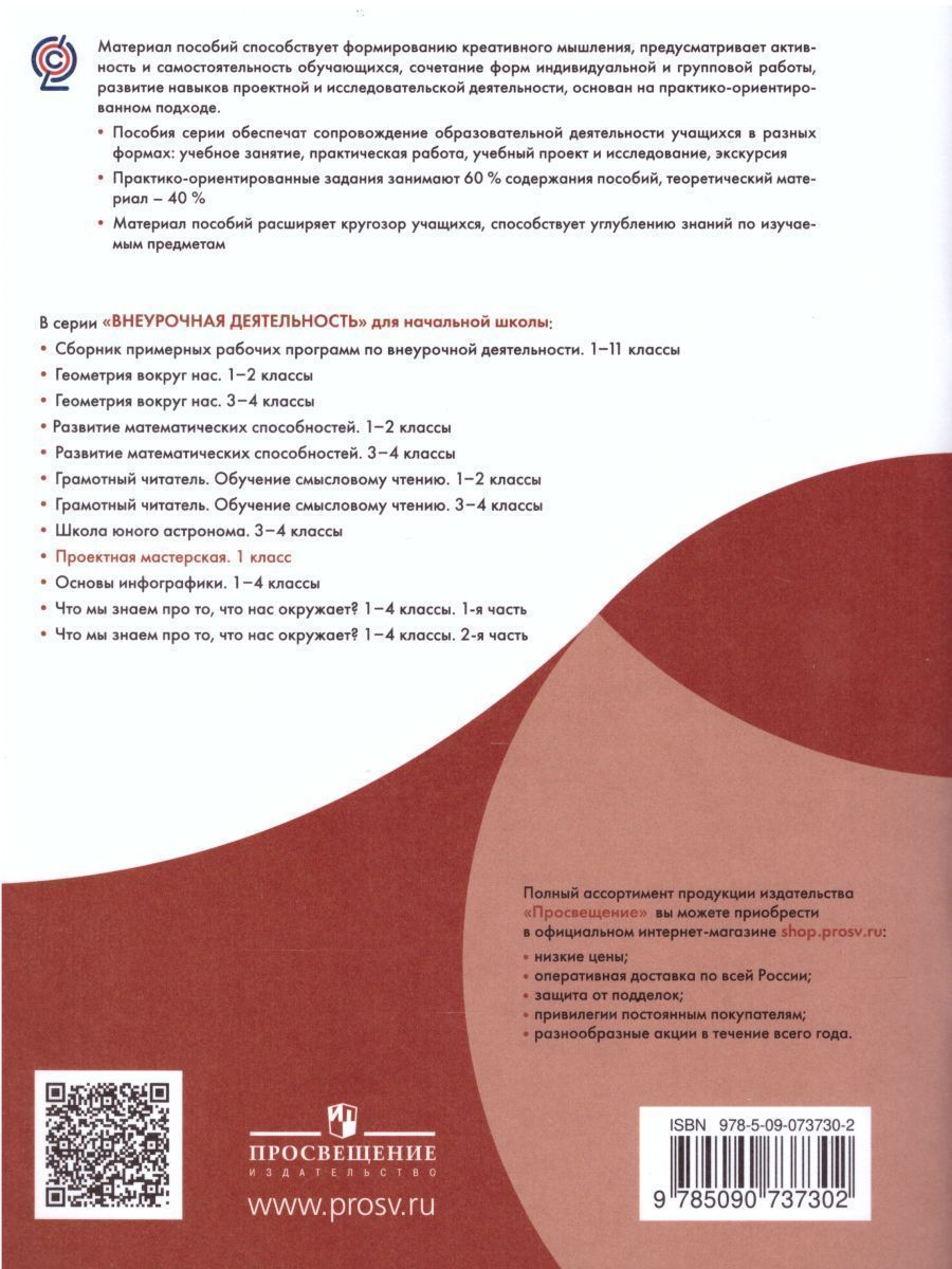 Пособие в доступной форме объясняет первоклассникам, какие умения понадобятся им для выполнения школьного проекта по любому предмету. Для отработки каждого из этих умений дети выполняют мини-проекты. Учащиеся освоят различные способы представления информации, научатся наблюдать и измерять. Финальный большой проект позволяет обобщить всё, чему дети научились за год, и даёт им возможность получить опыт коллективной творческой деятельности. Пособие предназначено для организации работы учащихся на уроках и во внеурочной деятельности. Может использоваться на занятиях, проводимых по любым учебным курсам для начальной школы. Пособие адресовано учащимся.Характеристики