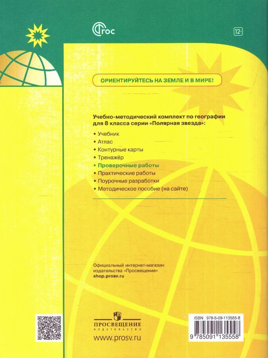 Предлагаемое учебное пособие содержит тематические проверочные работы в двух вариантах, входит в УМК «Полярная звезда». Все проверочные работы структурированы в соответствии с разделами и темами учебника и предназначены для проверки знаний учащихся по географии в 8 классе. Пособие содержит ответы на все вопросы проверочных работ. Книга адресована педагогам, учащимся и их родителям для проверки/самопроверки достижений требований Федерального государственного образовательного стандарта по курсу географии 8 класса к уровню подготовки учащихся основной школы.Характеристики