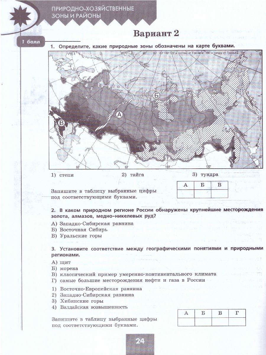География 8 класс. Проверочные работы