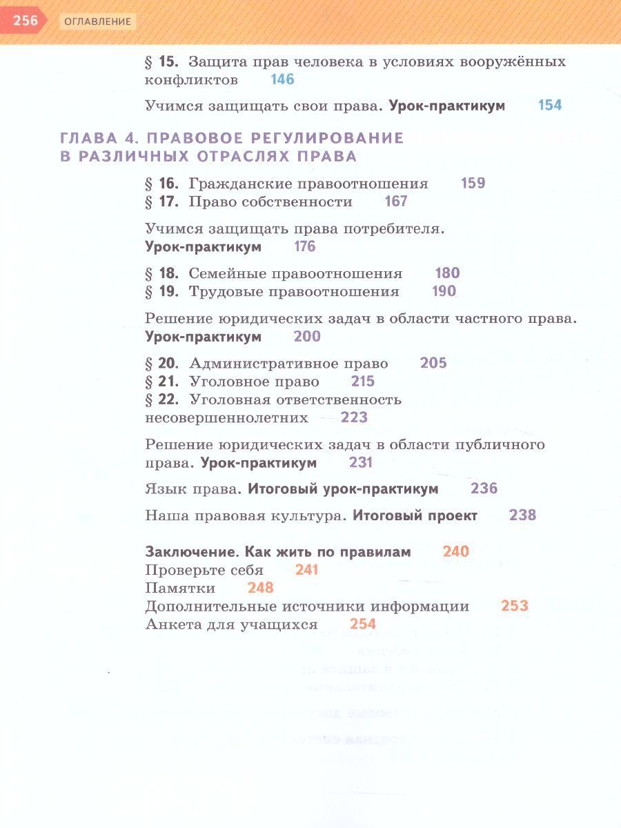 Учебник продолжает курс обществознания основной школы. Содержит обширный теоретический и фактический материал о ценностях и нормах (социальных и правовых), определяющих поведение человека. Методический аппарат предлагает разноуровневые вопросы и задания для индивидуальной и коллективной работы, учит работать с информацией. Схемы и иллюстрации помогут лучше усвоить содержание, а специальные правила (памятки) – правильно организовать работу. Особая роль отводится урокам-практикумам, позволяющим применить полученные знания в жизни. Учебник соответствует федеральному государственному образовательному стандарту основного общего образования.Характеристики