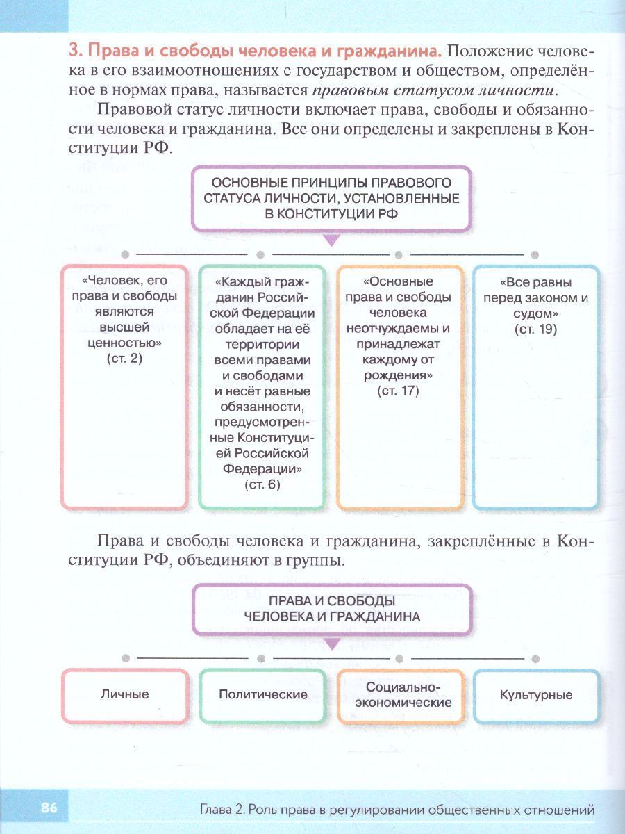 Учебник знакомит обучающихся с взаимодействием людей в социальных группах. В доступной форме излагаются основные юридические понятия, сообщаются сведения о правах и обязанностях граждан РФ. Работа с учебником позволит решить задачи социализации подростков, формирования ответственных граждан РФ. Иллюстрации, схемы и методический аппарат нацелены на реализацию системно-деятельностного подхода в образовательном процессе. Учебник написан в соответствии с федеральным государственным образовательным стандартом основного общего образования и примерной основной образовательной программой основного общего образования.Характеристики