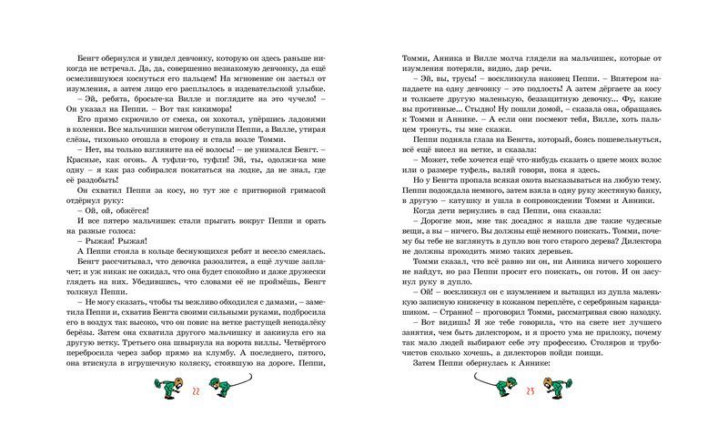 Героиня сказочной повести АСТРИД ЛИНДГРЕН Пеппи Длинныйчулок – великая фантазёрка и выдумщица. Рядом с ней никому не хочется становиться взрослым. У неё даже есть пилюли, которые помогают детям не взрослеть. Да и зачем, если «взрослых вечно донимают мозоли, налоги и всякие другие неприятности»?! И хотя порой Пеппи ведёт себя очень странно, она самая добрая, самая удивительная, самая лучшая девочка на свете. В книге использованы оригинальные рисунки замечательной художницы Ингрид Ванг Нюман, которые создавались в сотрудничестве с самой писательницей. Именно с этими иллюстрациями книга «Пеппи Длинныйчулок» впервые вышла в свет и стала бестселлером.Характеристики