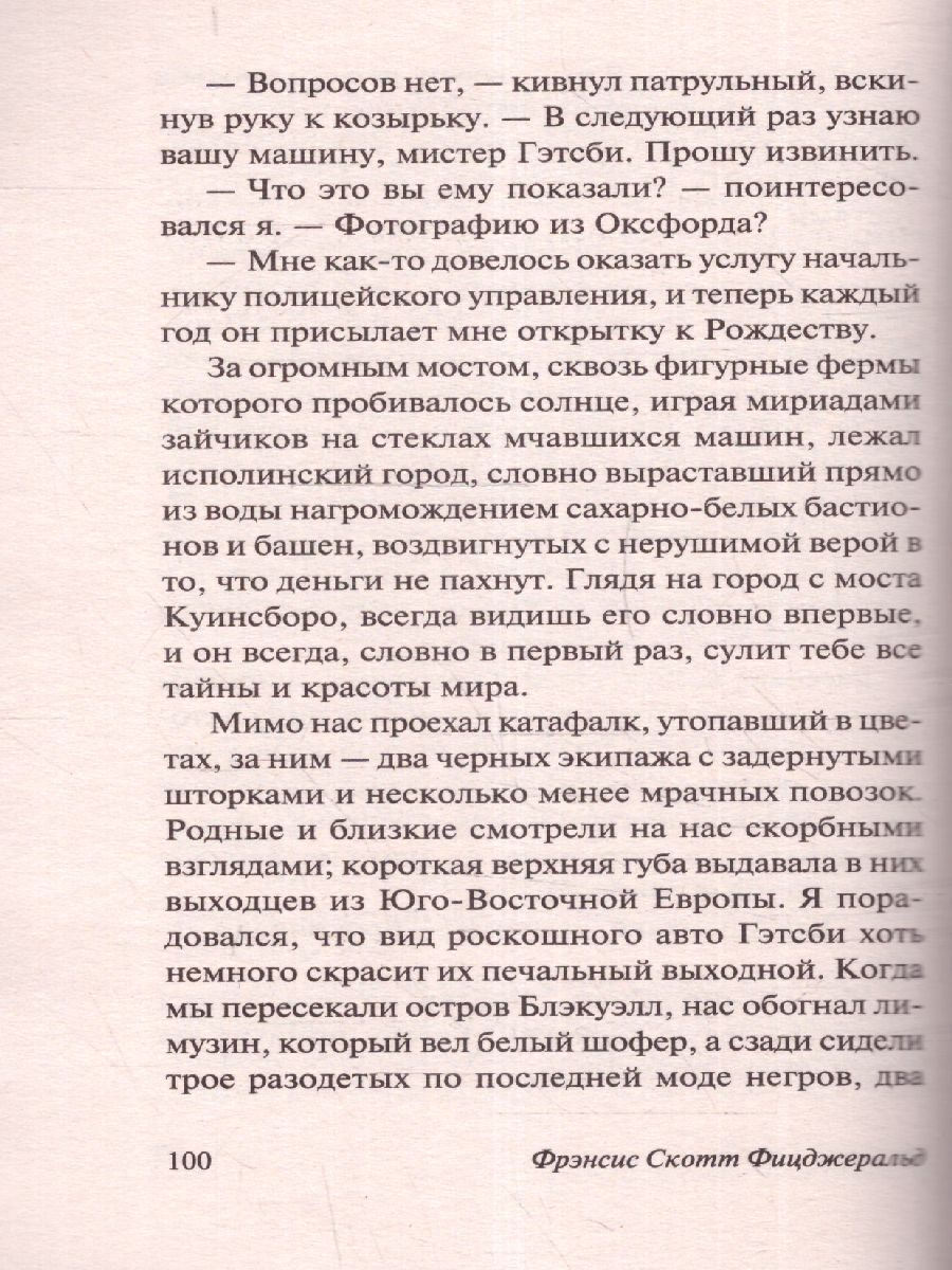 "Бурные" двадцатые годы прошлого столетия… Время шикарных вечеринок, "сухого закона" и "легких" денег… Эти "новые американцы" уверены, что расцвет будет вечным, что достигнув вершин власти и богатства, они обретут и личное счастье… Таким был и Джей Гэтсби, ставший жертвой бессмысленной погони за пленительной мечтой об истинной и вечной любви, которой не суждено было сбыться… Перед вами - самый знаменитый роман Ф. С. Фицджеральда в новом переводе!Характеристики