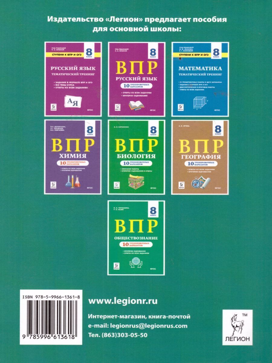 Всероссийская проверочная работа по истории в 8-м классе проводится впервые. Наше пособие содержит необходимый материал для подготовки к ВПР. Варианты составлены в соответствии с образцом и планом ВПР, опубликованными на сайте от 30.11.2019 г. Книга содержит: • подробное описание содержания, структуры, системы оценивания и типов заданий; • 10 тренировочных вариантов; • развёрнутые ответы и критерии оценивания заданий ко всем вариантам; • приложение с перечнем основных дат российской и зарубежной истории конца XVII–XVIII в. Структура пособия позволяет работать с ним как на уроках, так и дома. Книга будет полезна учителям, методистам, учащимся 8-х классов и их родителям.Характеристики