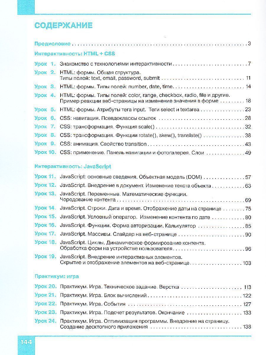 Данное учебное пособие предназначено для учащихся 10–11 классов и посвящено интерактивности на основе HTML, CSS и JavaScript. Пособие описывает поэтапное добавление различных интерактивных элементов в одностраничный сайт. Позволяет обучающимся понять, как сделаны те объекты и эффекты, которыми веб-разработчики стараются удивить нас в Интернете. Это пособие является продолжением книги Д.Г. Жемчужникова «Веб-дизайн. Уровень 1», но возможно пользоваться им и как самостоятельным изданием. Пособие может использоваться в рамках внеурочной деятельности, дополнительного образования, а также при реализации части учебного плана, формируемой участниками образовательных отношений. Для организаций общего и дополнительного образования.Характеристики