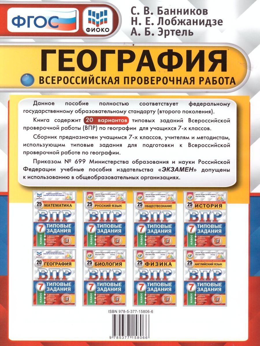 ВПР География 7 класс. 20 вариантов. Типовые задания. ФИОКО. ФГОС