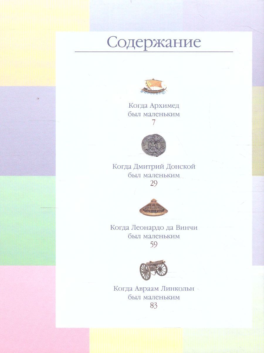 Эта авторская серия Валерия Воскобойникова представляет собой уникальное собрание биографий самых известных людей планеты. Четвертая книга рассказывает о том, какими в детстве были Архимед и Дмитрий Донской, Леонардо да Винчи и Авраам Линкольн, Генрих Шлиман и Павел Третьяков, Чарли Чаплин и маршал Жуков. О детстве других выдающихся личностей читайте в следующих книгах. Издание предназначено для детей среднего школьного возраста.Характеристики