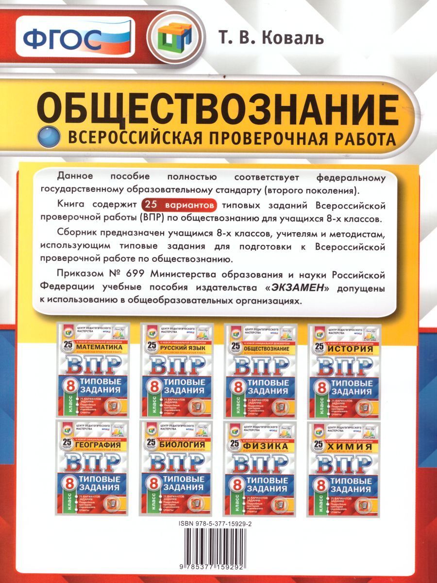 ВПР Обществознание 8 класс 25 вариантов. Типовые задания. ФГОС