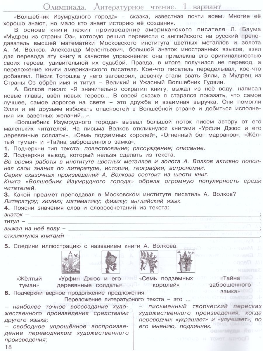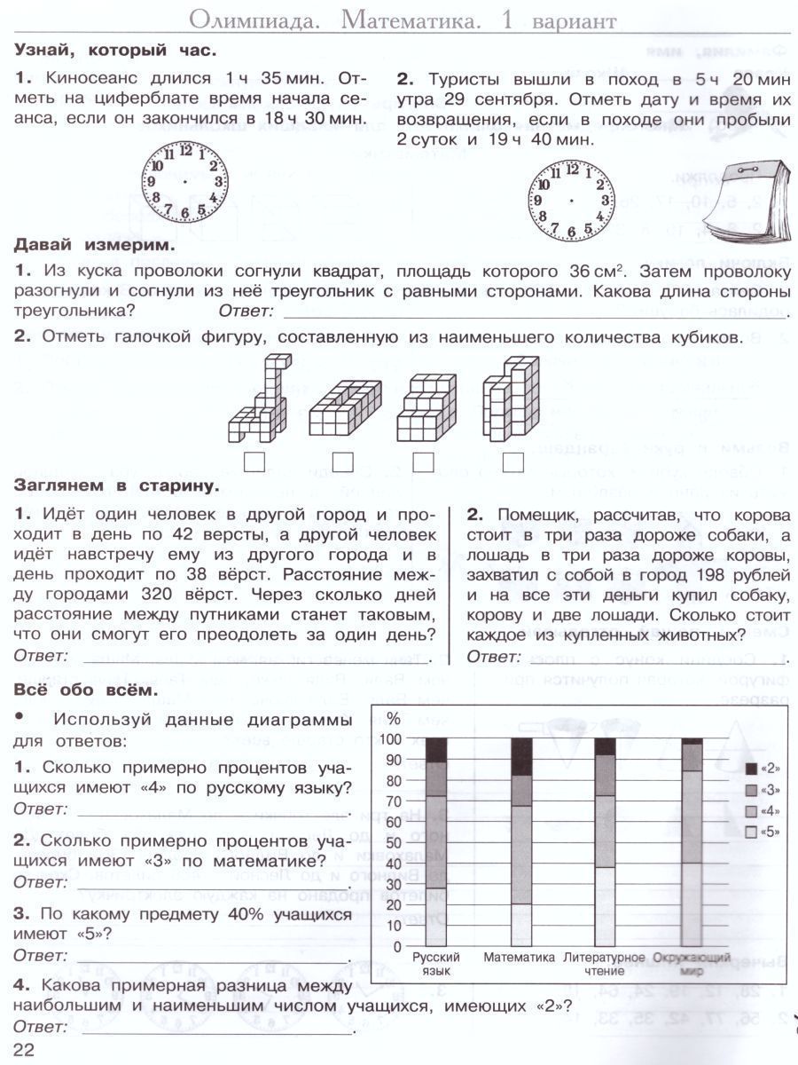 Многопредметная олимпиада "Снегирь" 4 класс. Рабочая тетрадь. Выпуск 1. Вариант 1, 2. Тесты