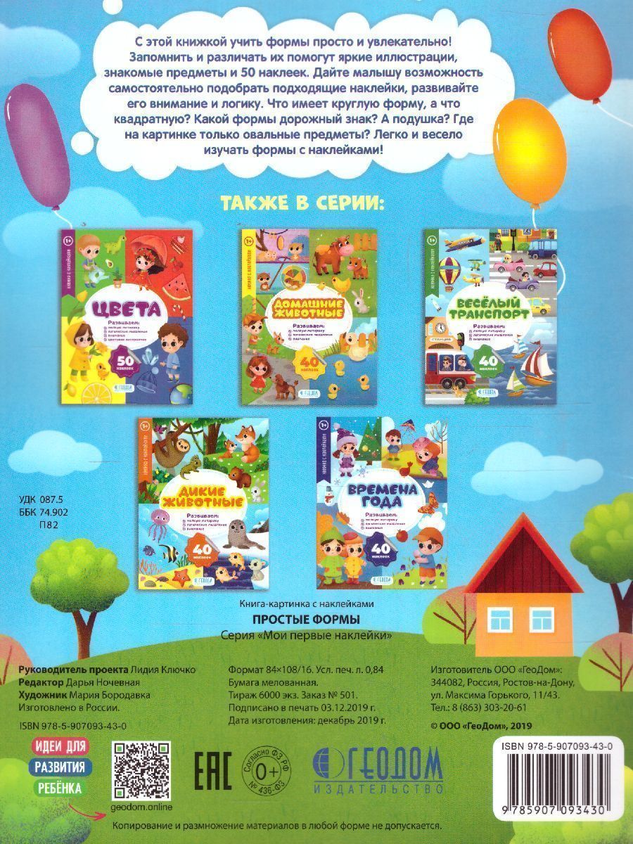 С этой книжкой учить формы просто и увлекательно! Запомнить и различать их помогут яркие иллюстрации, знакомые предметы и 50 наклеек. Дайте малышу возможность самостоятельно подобрать подходящие наклейки, развивайте его внимание и логику. Легко и весело изучать формы с наклейками!Характеристики