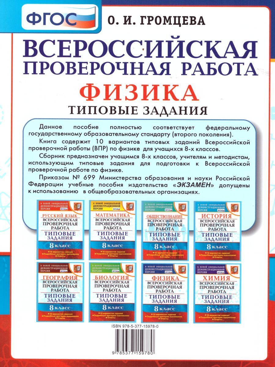 ВПР Физика 8 класс. 10 вариантов. Типовые задания. ФГОС