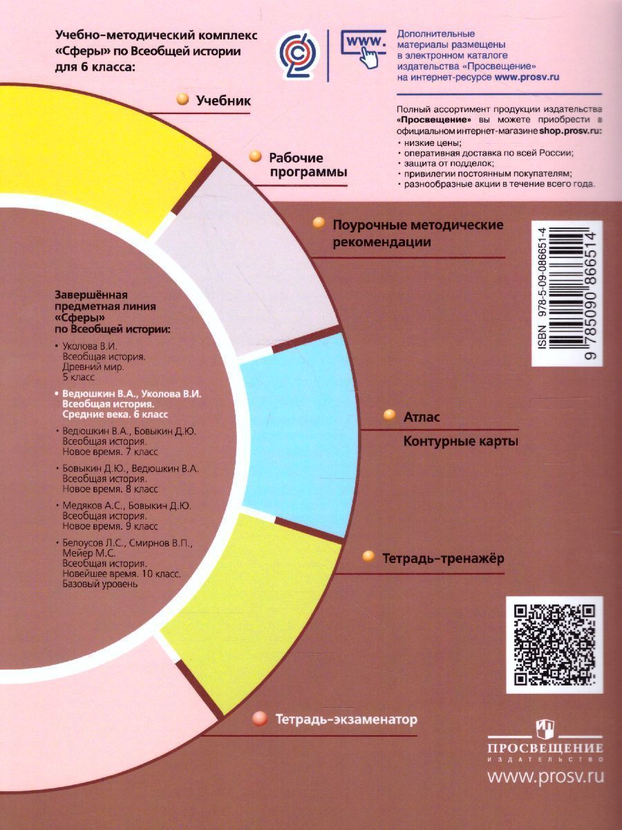 Тетрадь-экзаменатор является составной частью учебно-методического комплекта «История. Средние века» для 6 класса линии УМК «Сферы». Пособие предназначено для проверки результатов обучения по курсу Всеобщей истории 6 класса. В пособие включены проверочные работы в форме тестовых заданий, аналогичных заданиям ЕГЭ, и работы в форме вопросов. В пособии приведён перечень рефератов и творческих работ с указанием дополнительной литературы.Характеристики