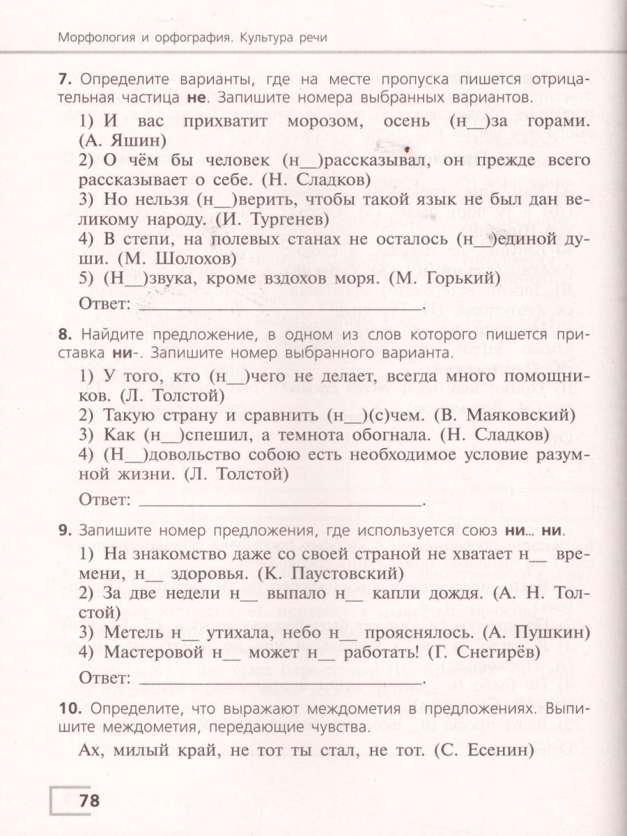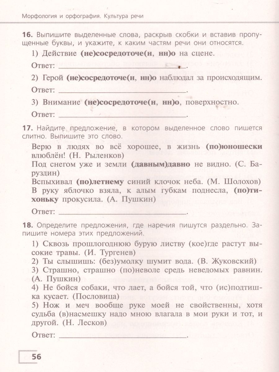 Пособие входит в состав переработанного в соответствии с требованиями ФГОС основного общего образования УМК Т. А. Ладыженской, М. Т. Баранова, Л. А. Тростенцовой и др., но может быть использовано и при работе по учебникам других авторов. Книга содержит тесты, тестовые комплексные задания и ответы к ним. Пособие адресовано обучающимся средней возрастной группы для осуществления ими самоподготовки и самоконтроля, а также учителям-словесникам для измерения учебных достижений семиклассников в широком диапазоне их знаний, умений и навыков.Характеристики